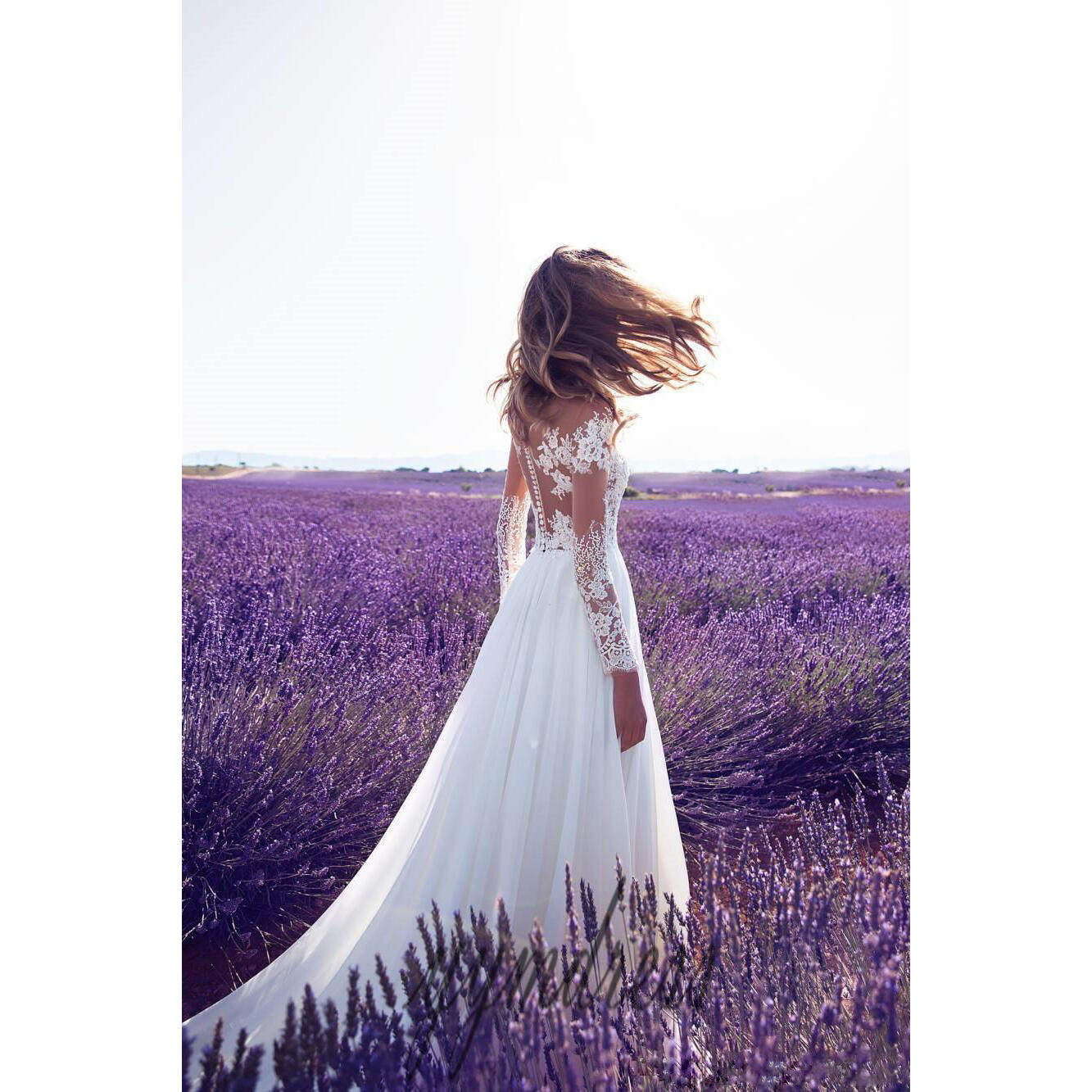 透视蕾丝婚纱伴娘礼服开叉长裙 wish长袖 新款 2020欧美外贸女装