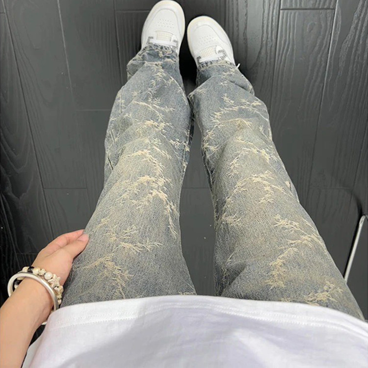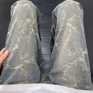男款 子显瘦显高直筒微喇裤 秋季 高街vibe裤 美式 荆棘提花弯刀牛仔裤