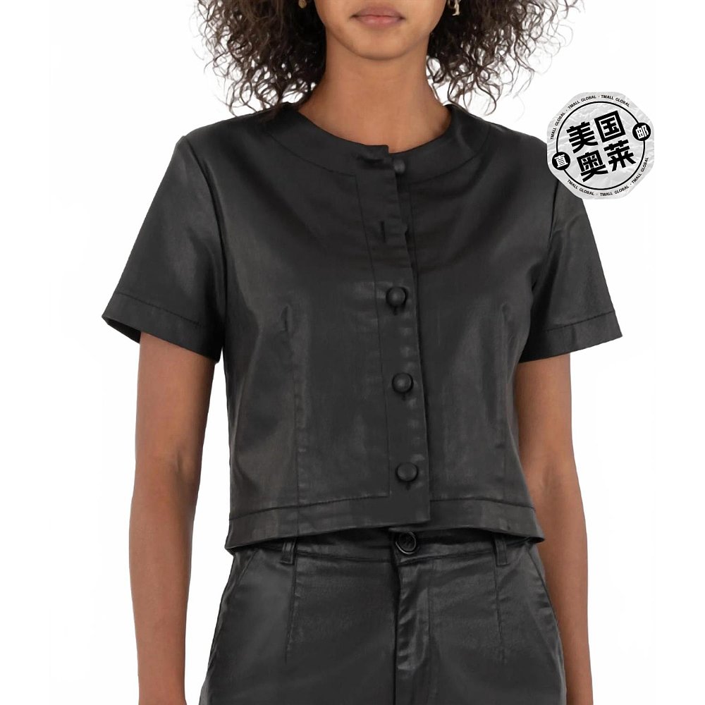 皮革圆领上衣 自营kut kloth黑色女式 the 美国奥莱直发 from
