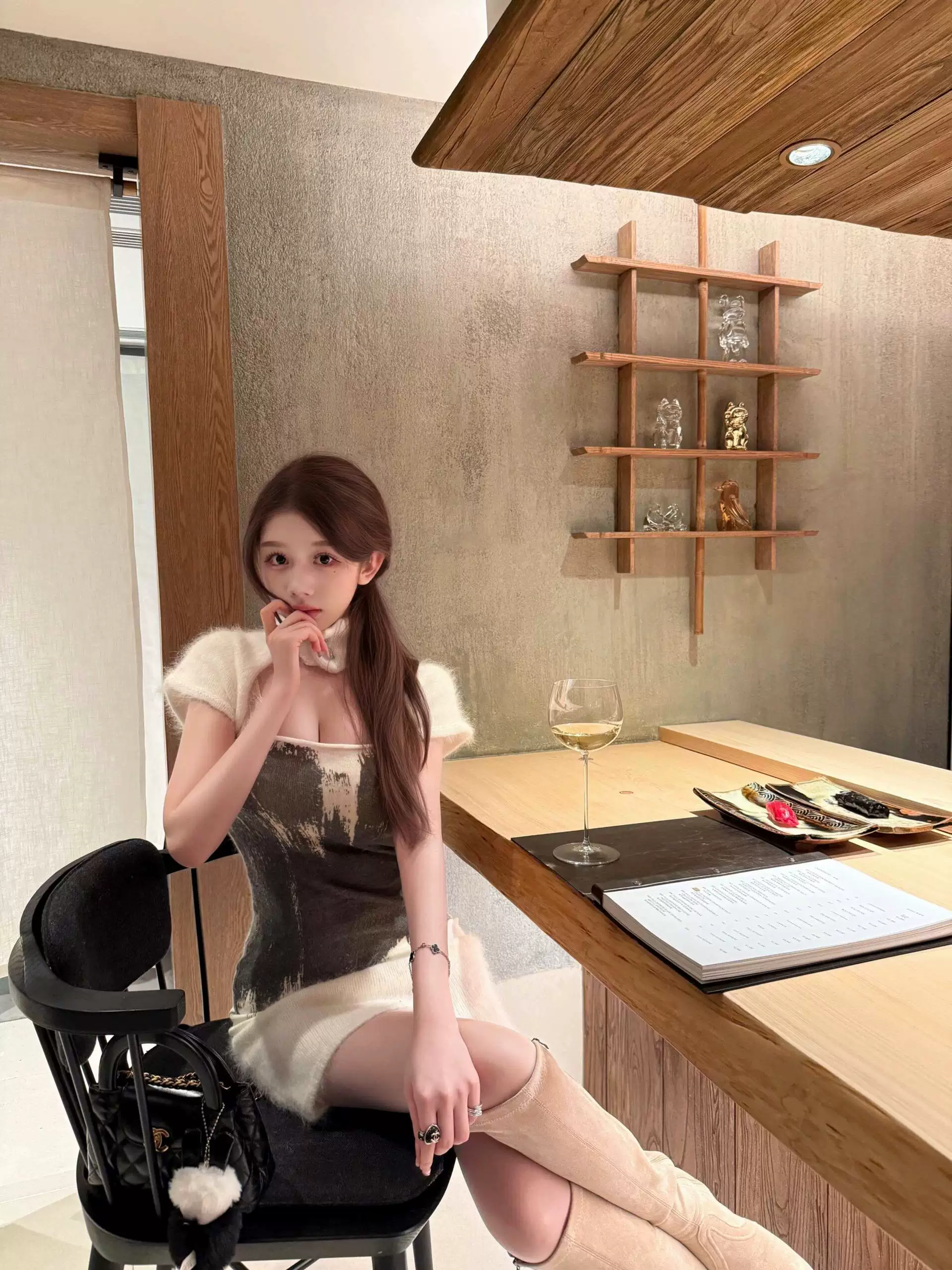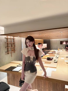 名媛贵气短裙古早针织连衣裙秋冬 羊毛纯欲毛茸茸修身 现货 兔毛