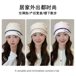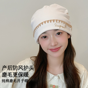 婧麒 月子帽秋冬防风保暖产妇帽坐月子孕妇纯棉护头帽 磨毛