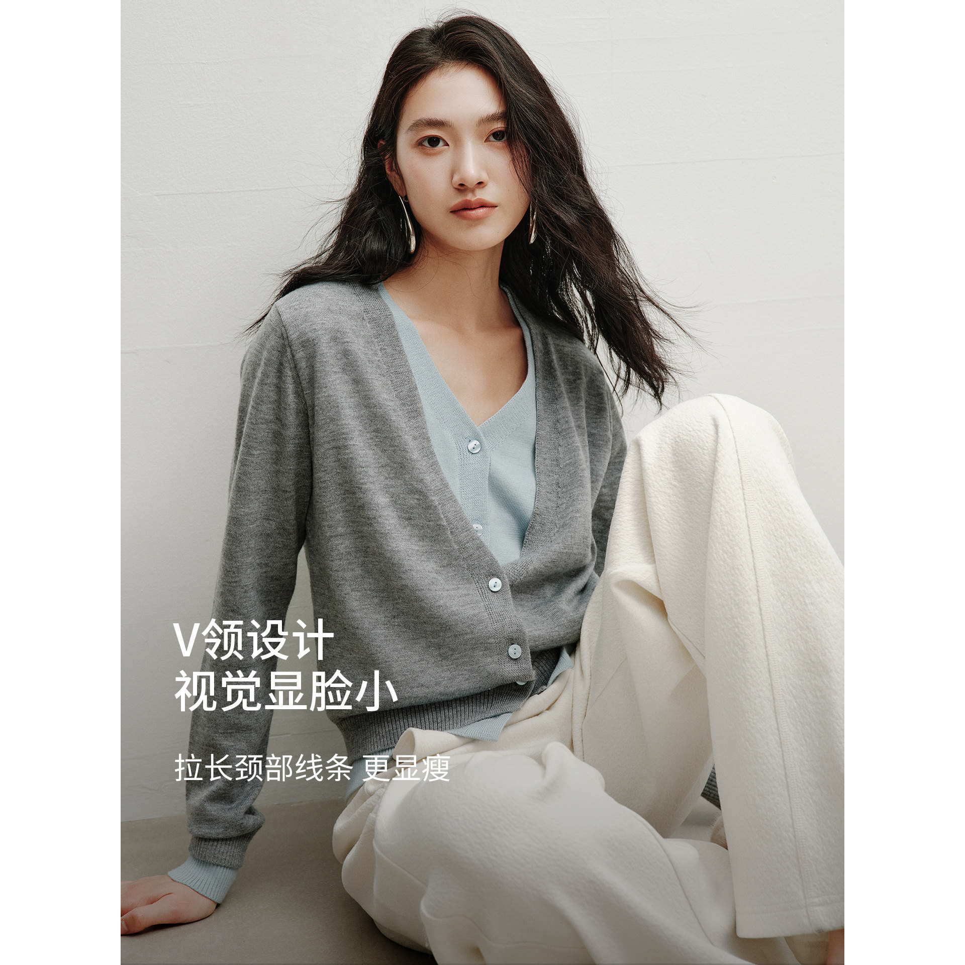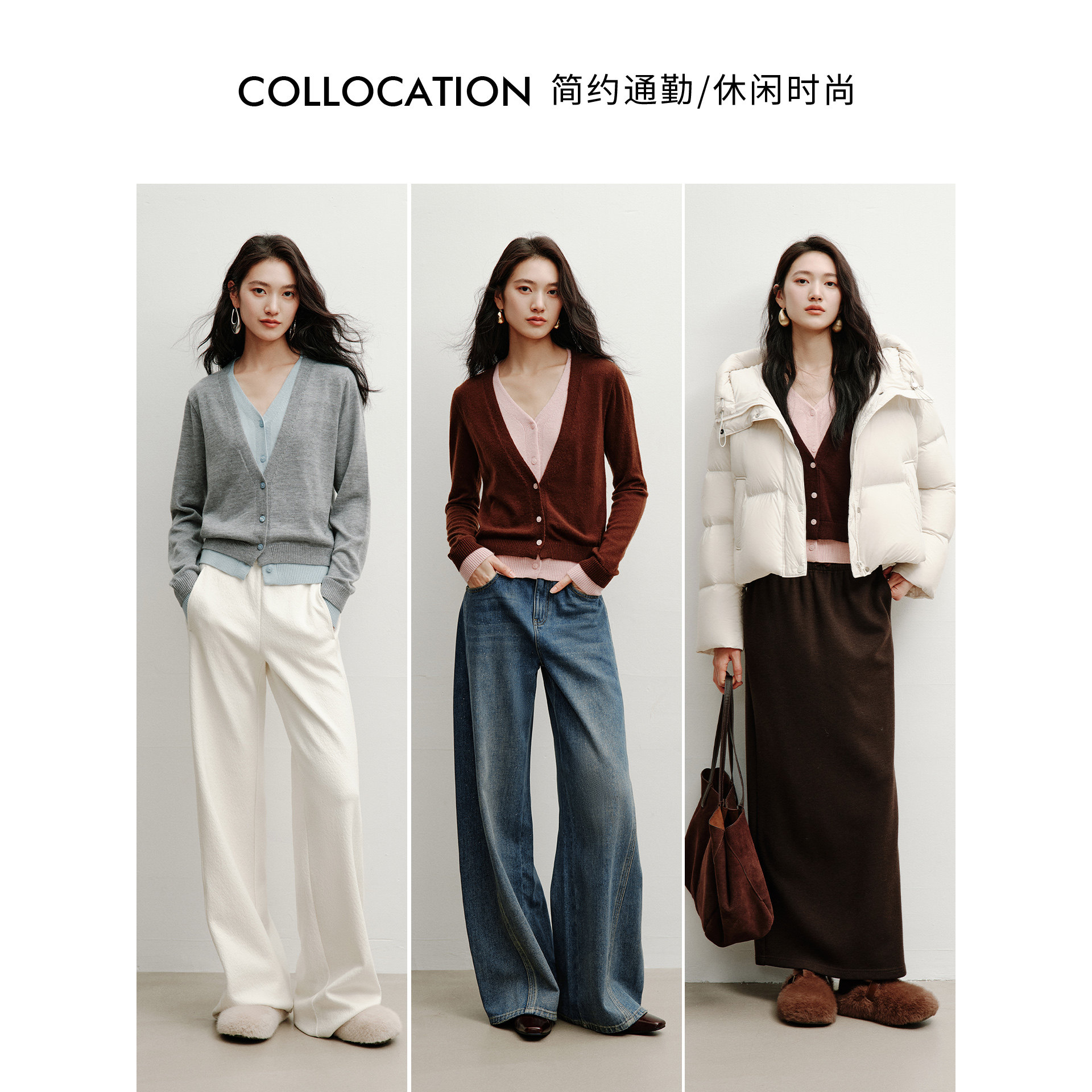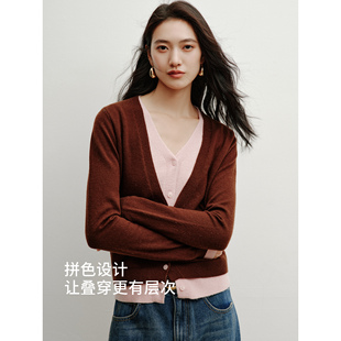 韩系时尚 新款 羊毛上衣 女2025年秋冬装 衣香丽影撞色假两件针织开衫