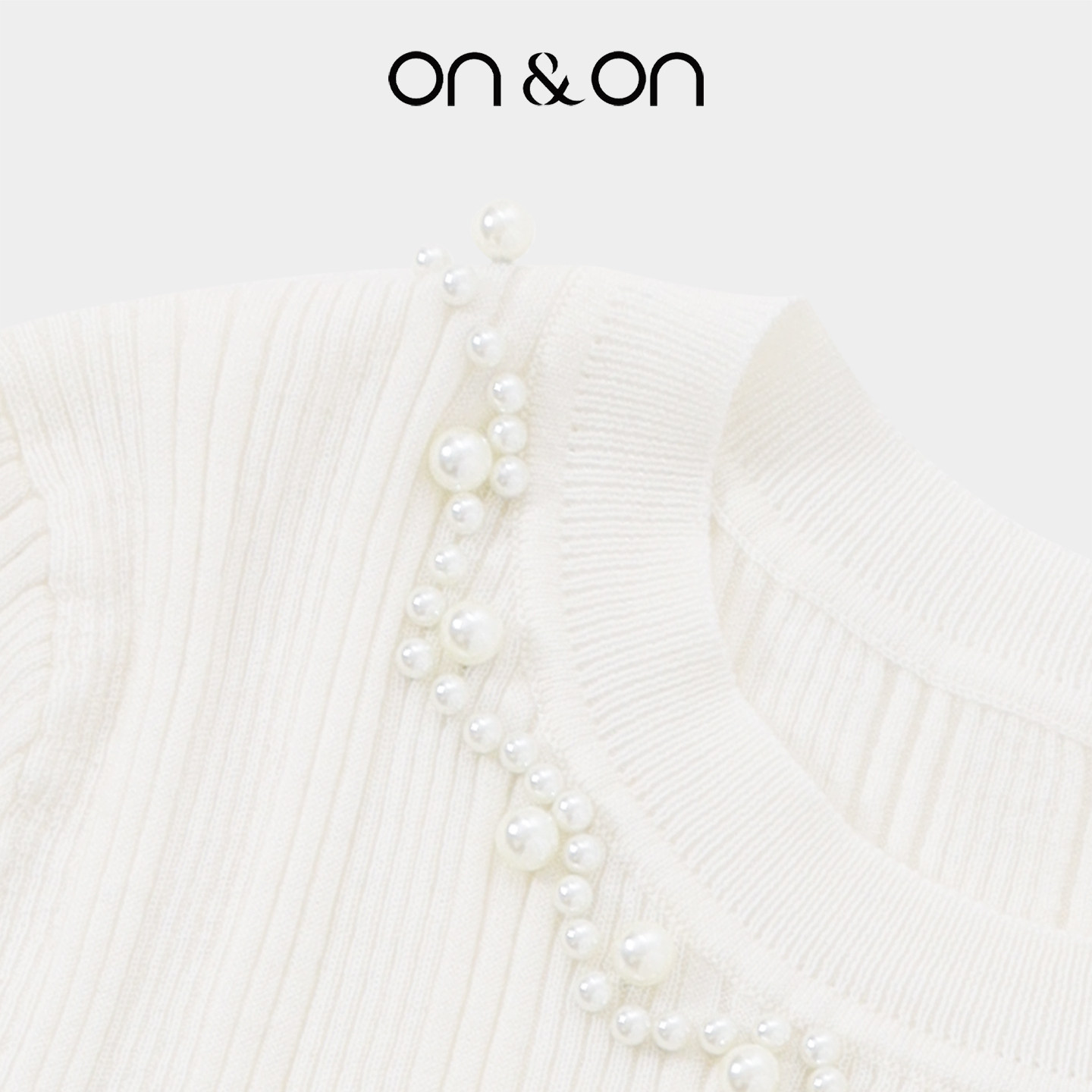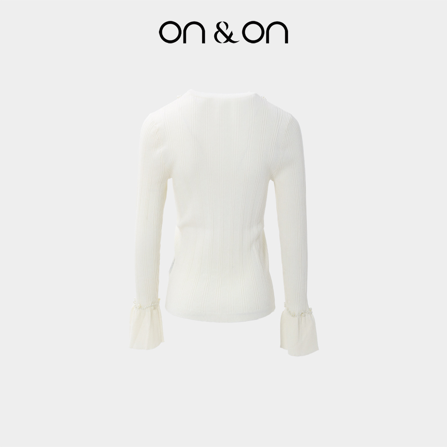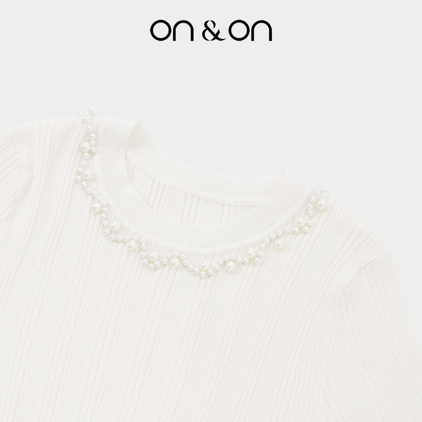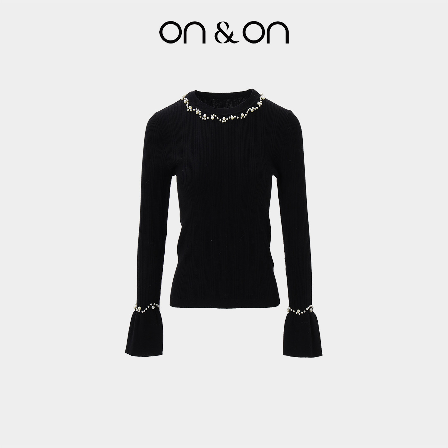 韩系圆领手工钉珠修身 新款 竖条纹针织上衣 安乃安2025冬季 ON&ON