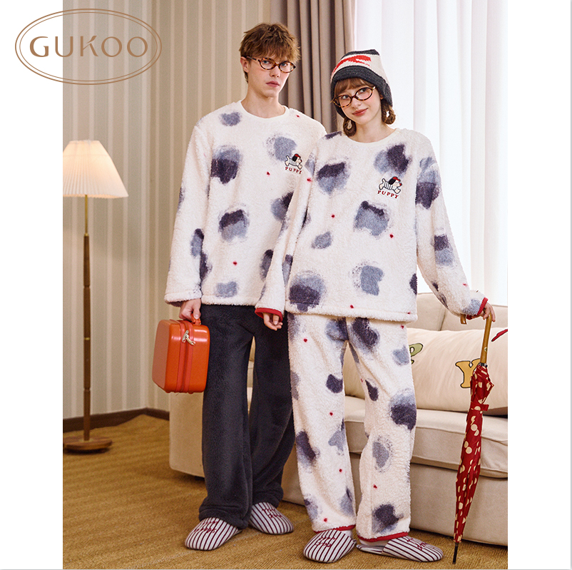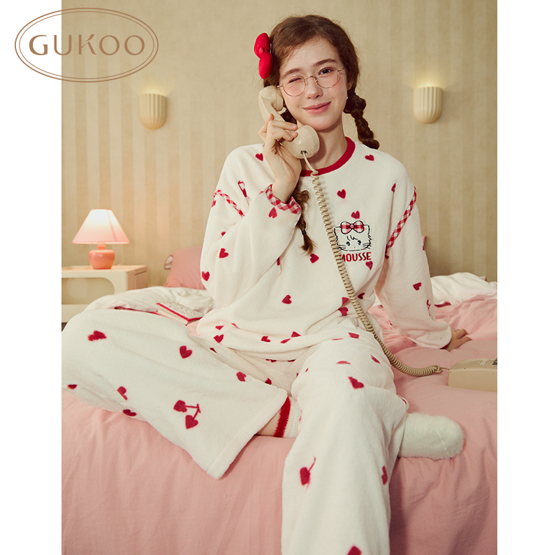 加厚慵懒风学院风半边绒家居服套装 睡衣女冬季 酷猫系列 yso
