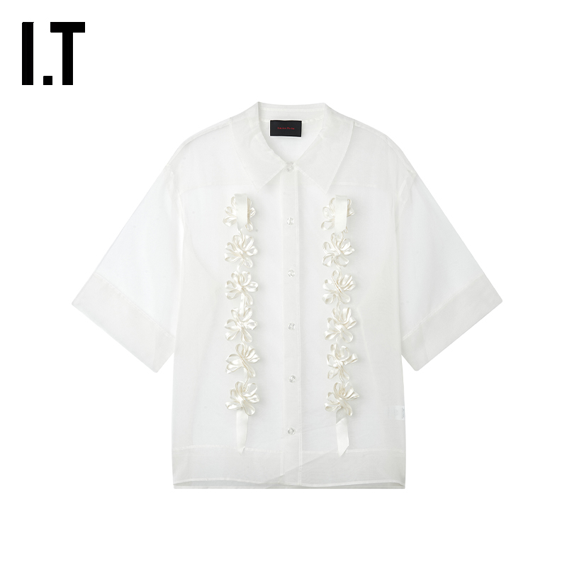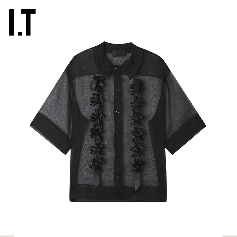 Simone 新款 Rocha男装 衬衫 透视网纱薄上衣538360MP 薄纱短袖