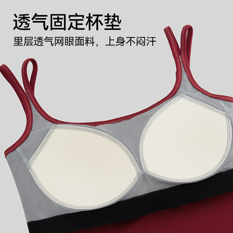 运动连衣裙女士U领辣妹肯豆风修身 自带杯垫吊带裙 显瘦双肩带短款