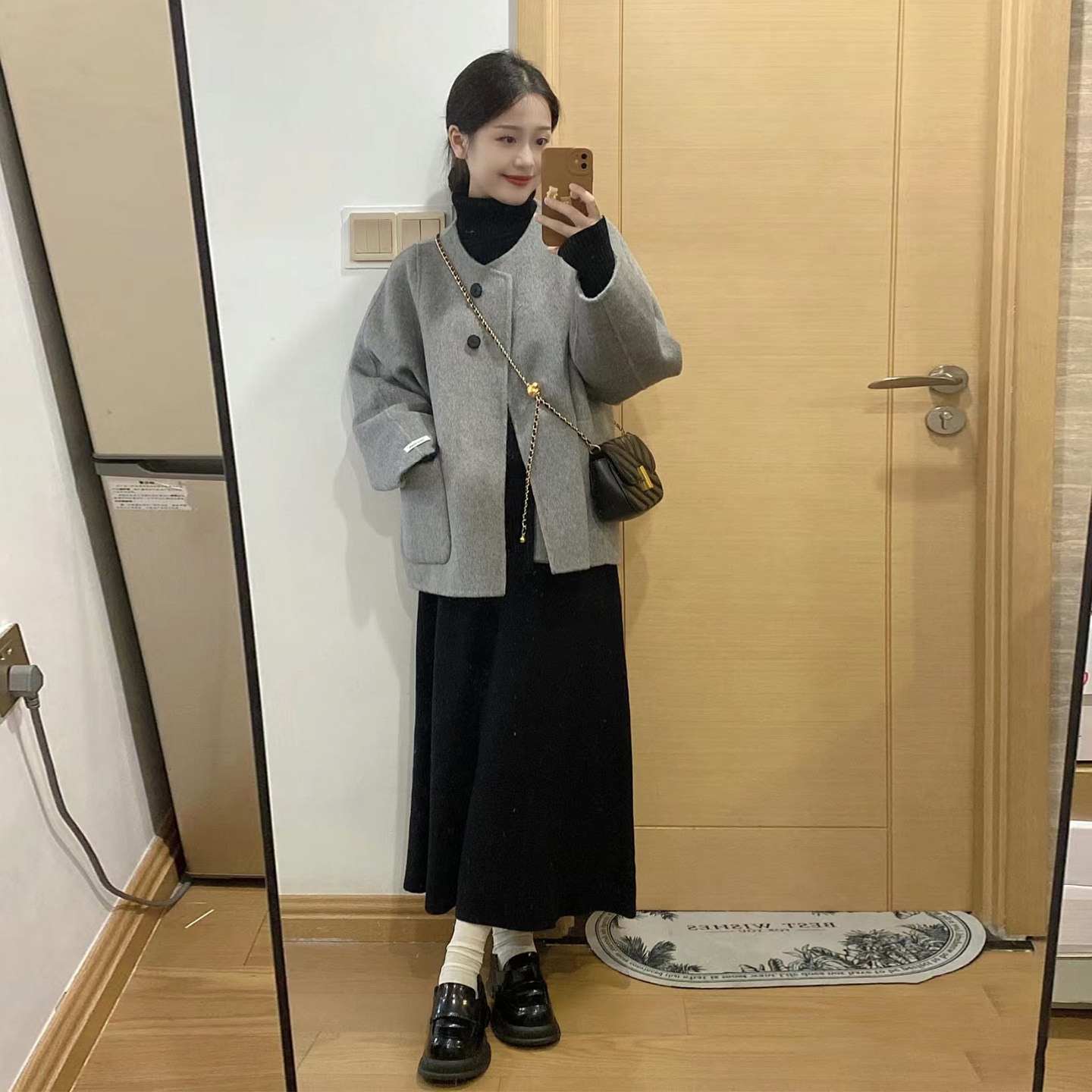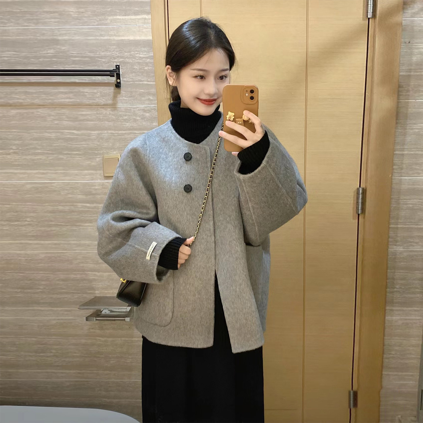 韩系灰色毛呢外套女秋冬装 高级感小个子宽松显瘦百搭呢子大衣 新款