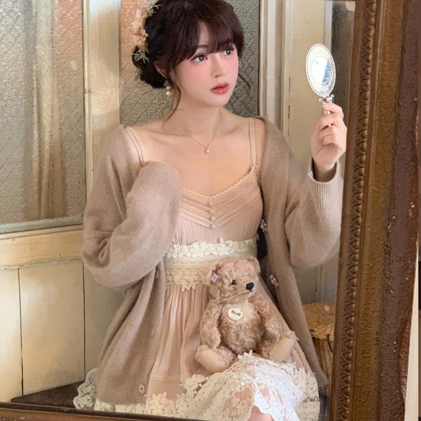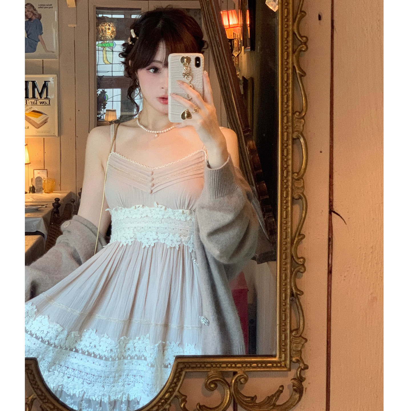 易碎商店·雾绒垂绪慵懒斜肩针织连衣裙气质内搭包臀裙子 现货