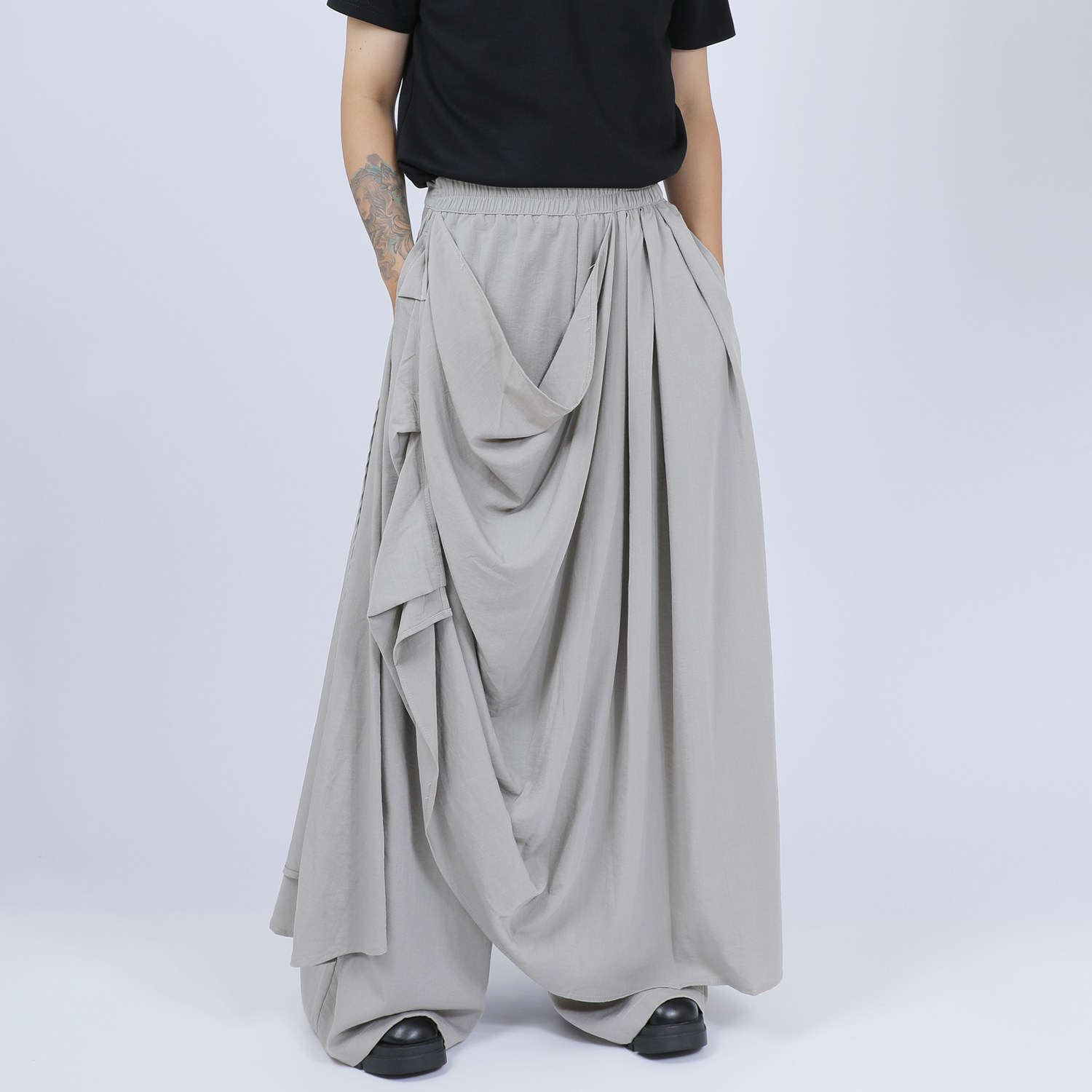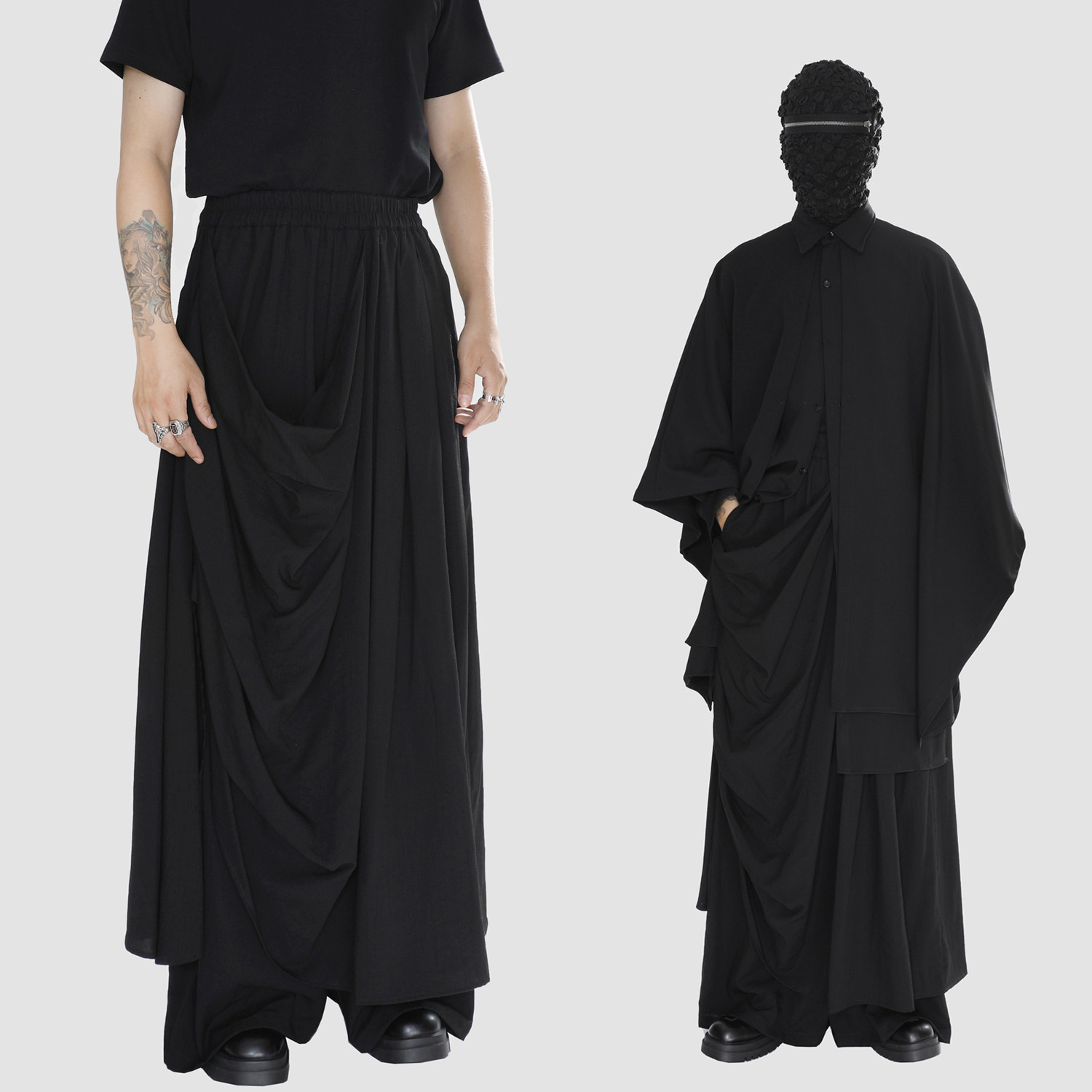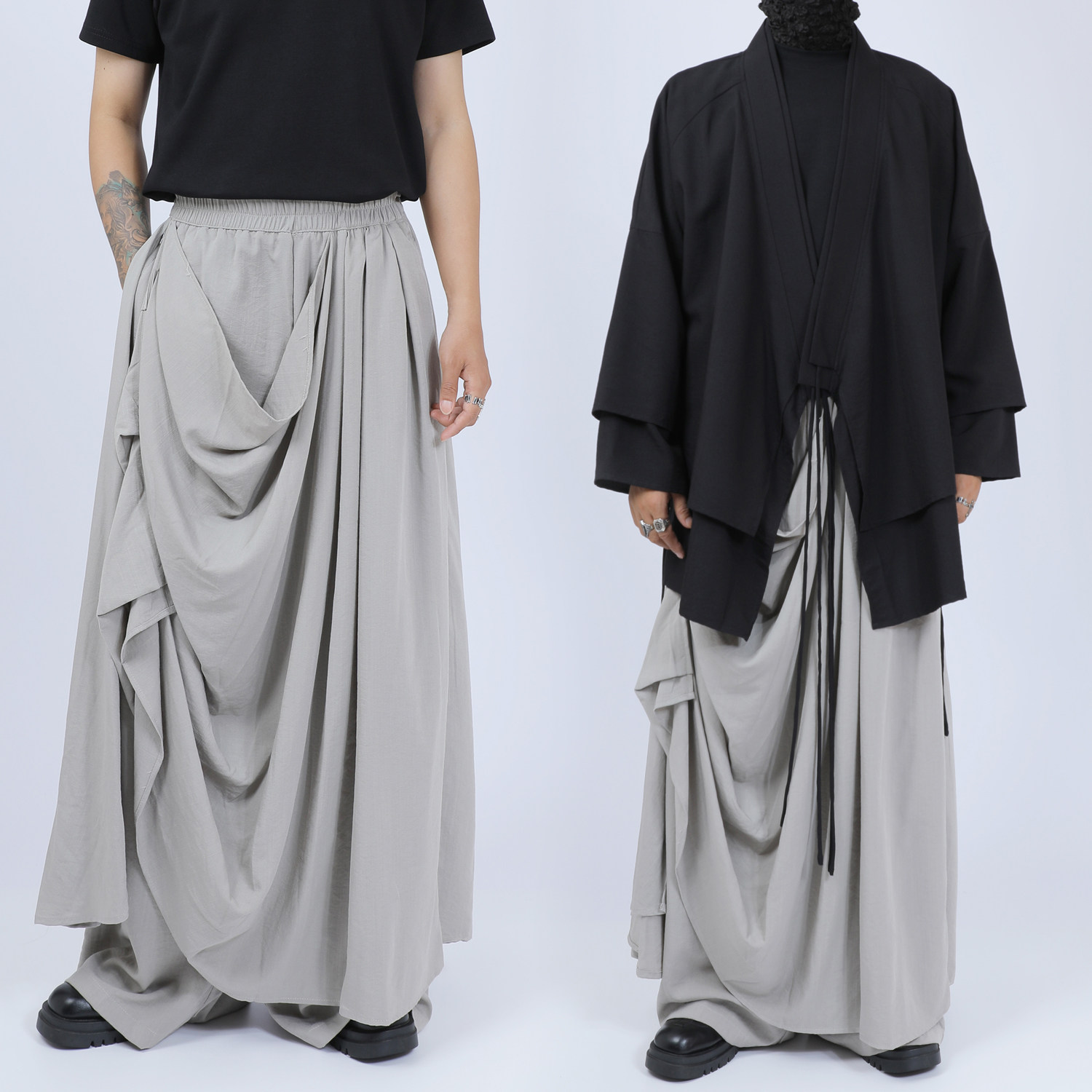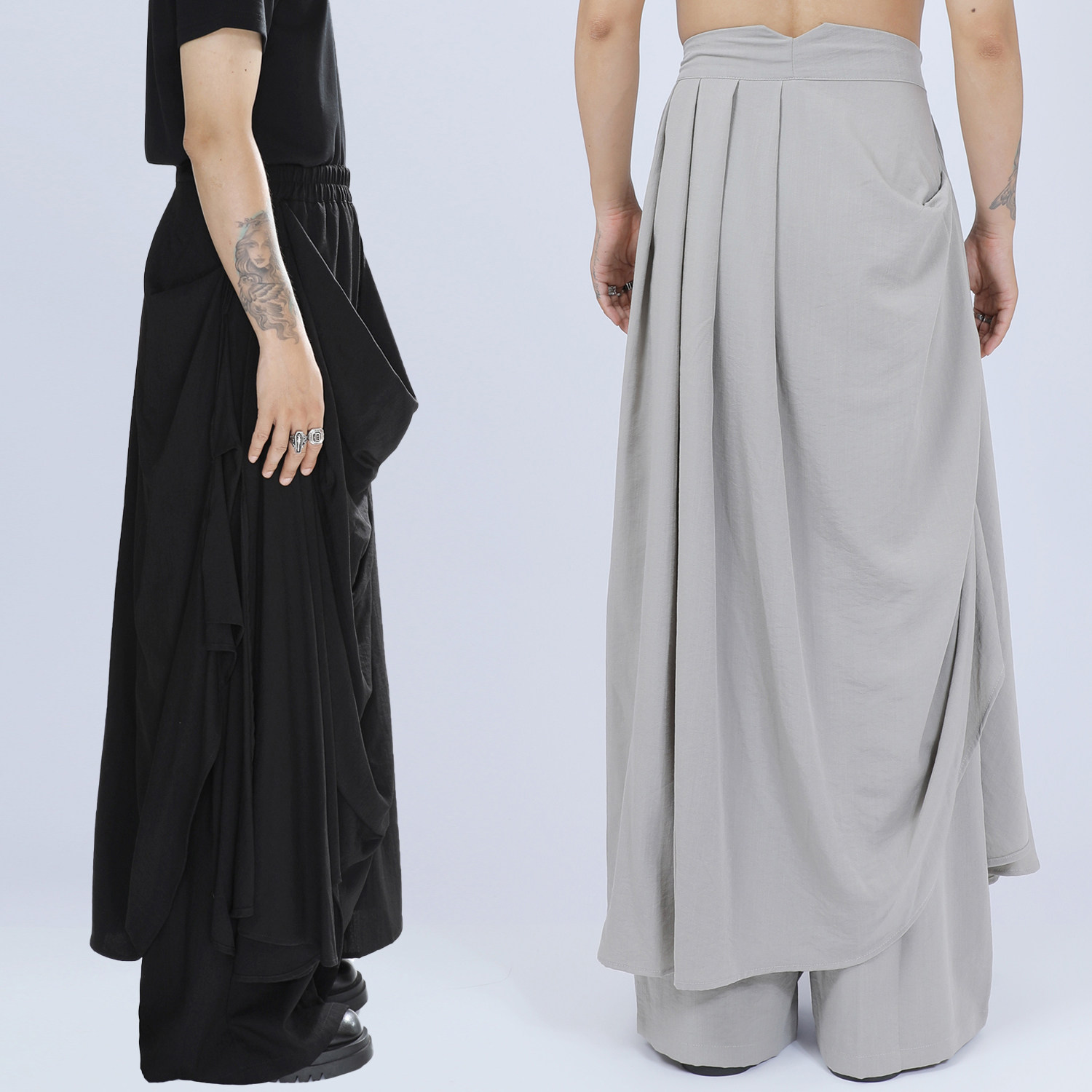 裙裤 原创男装 小众双层褶皱设计感山本大码 暗黑个性 子 休闲阔腿长裤