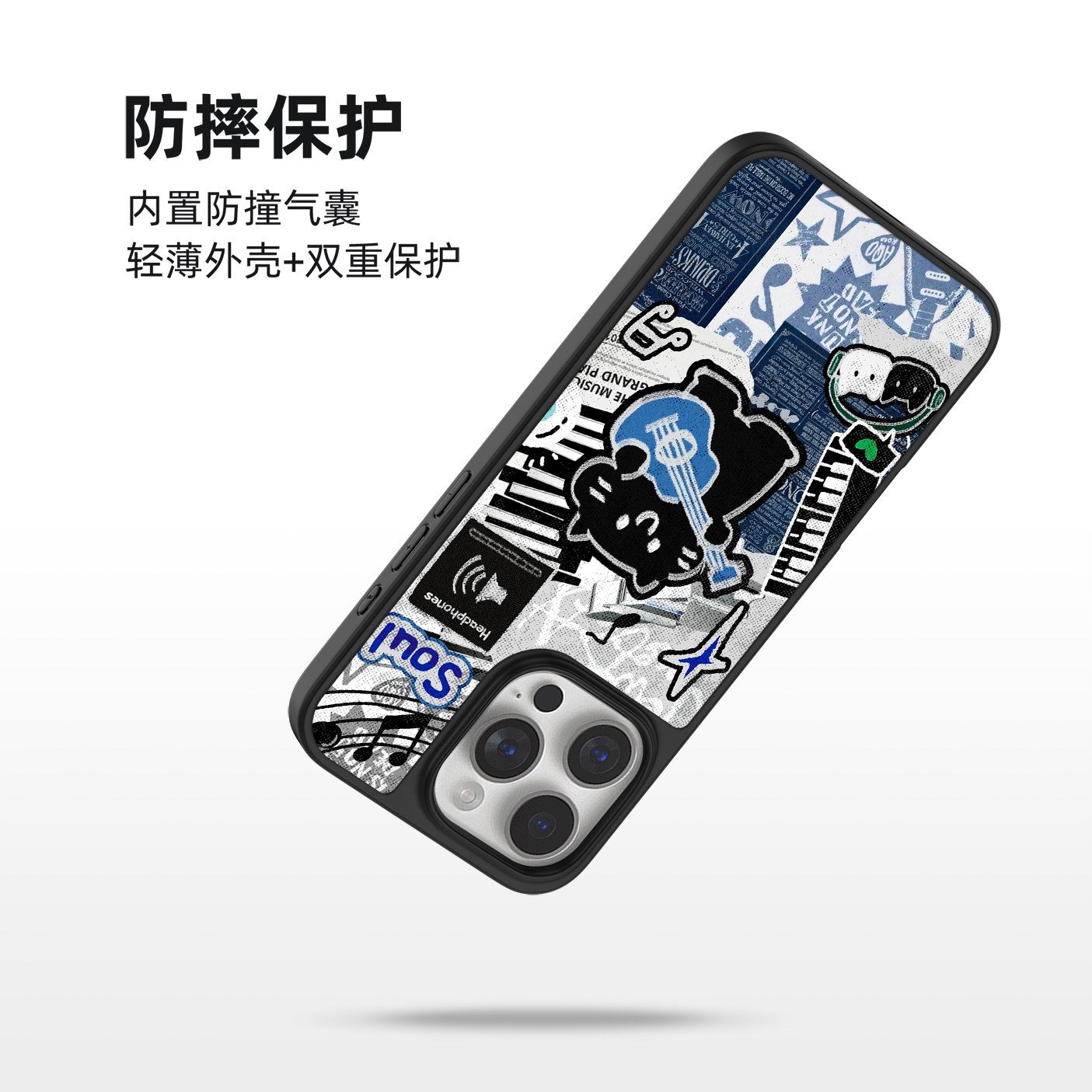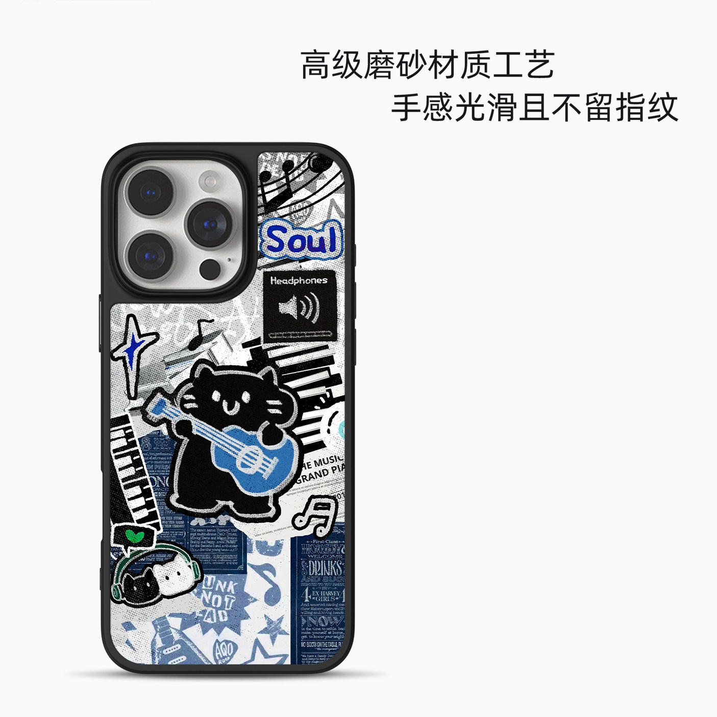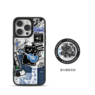 15美式 个性 14可爱高级13男生小众12黑边手机壳防摔 适用苹果小米手机壳17promax磁吸iPhone16新款 摇滚小黑猫