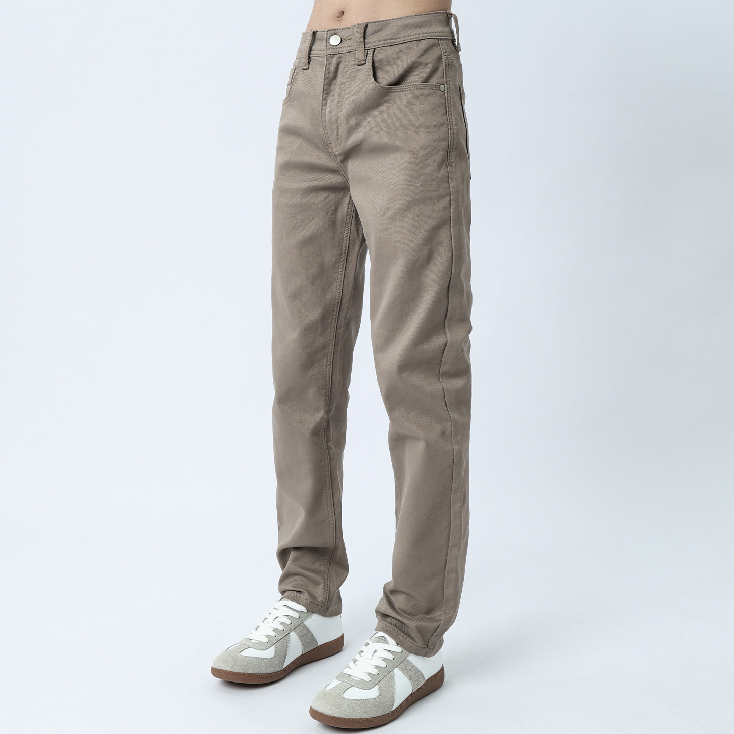 男士 2025新款 修身 美式 直筒弹力纯色休闲裤 灰咖色牛仔裤 窄版 子 爆款