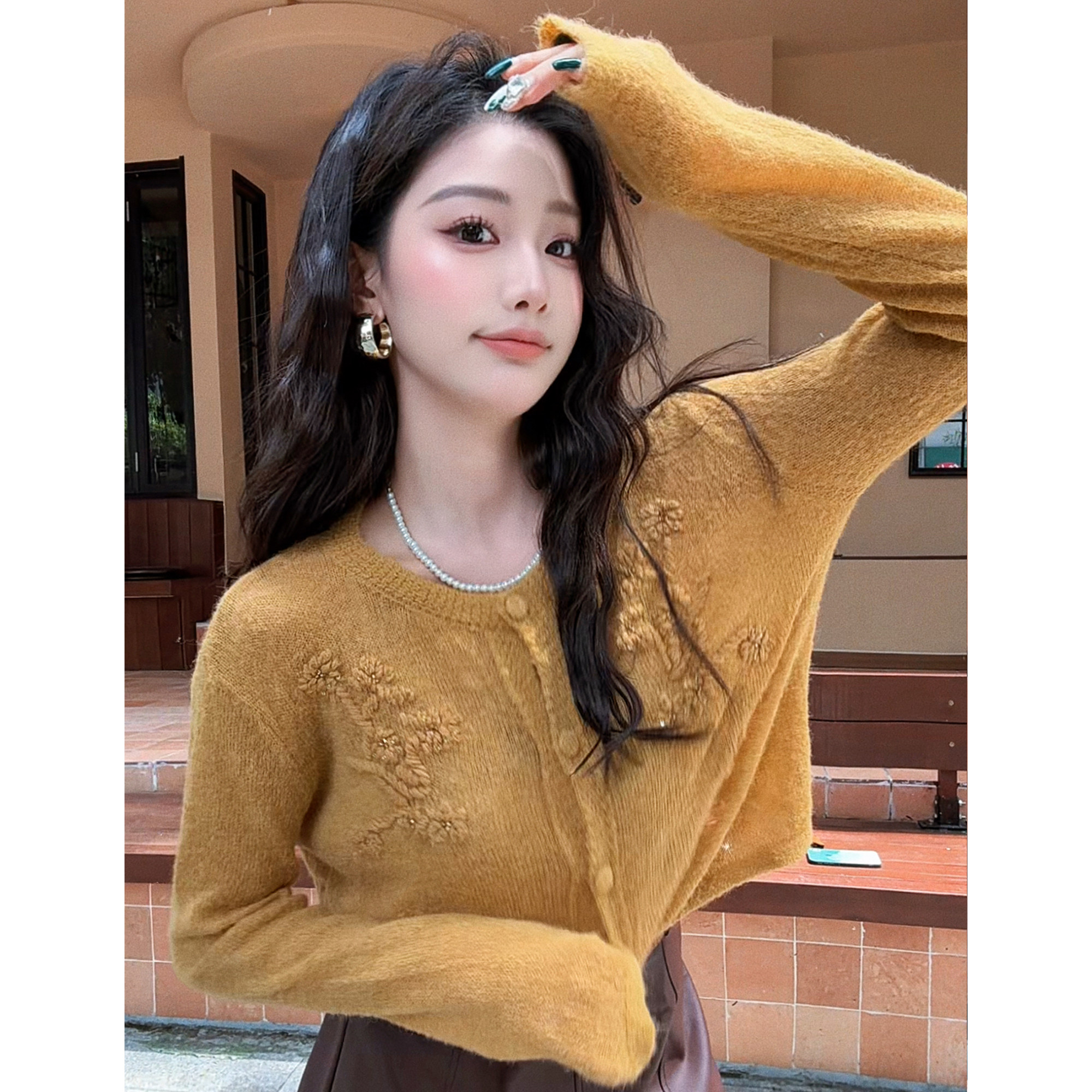 女纯羊绒毛衣针织打底衫 气质美学 100%纯山羊绒开衫 修身 秋冬 法式