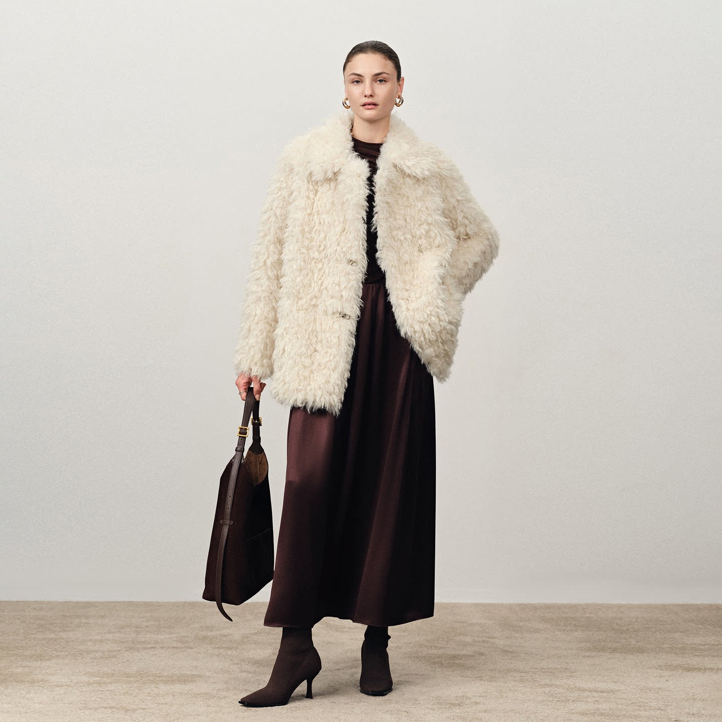 千金白色长卷毛大翻领非动物皮草外套 Fabrique法式 孔雪儿同款