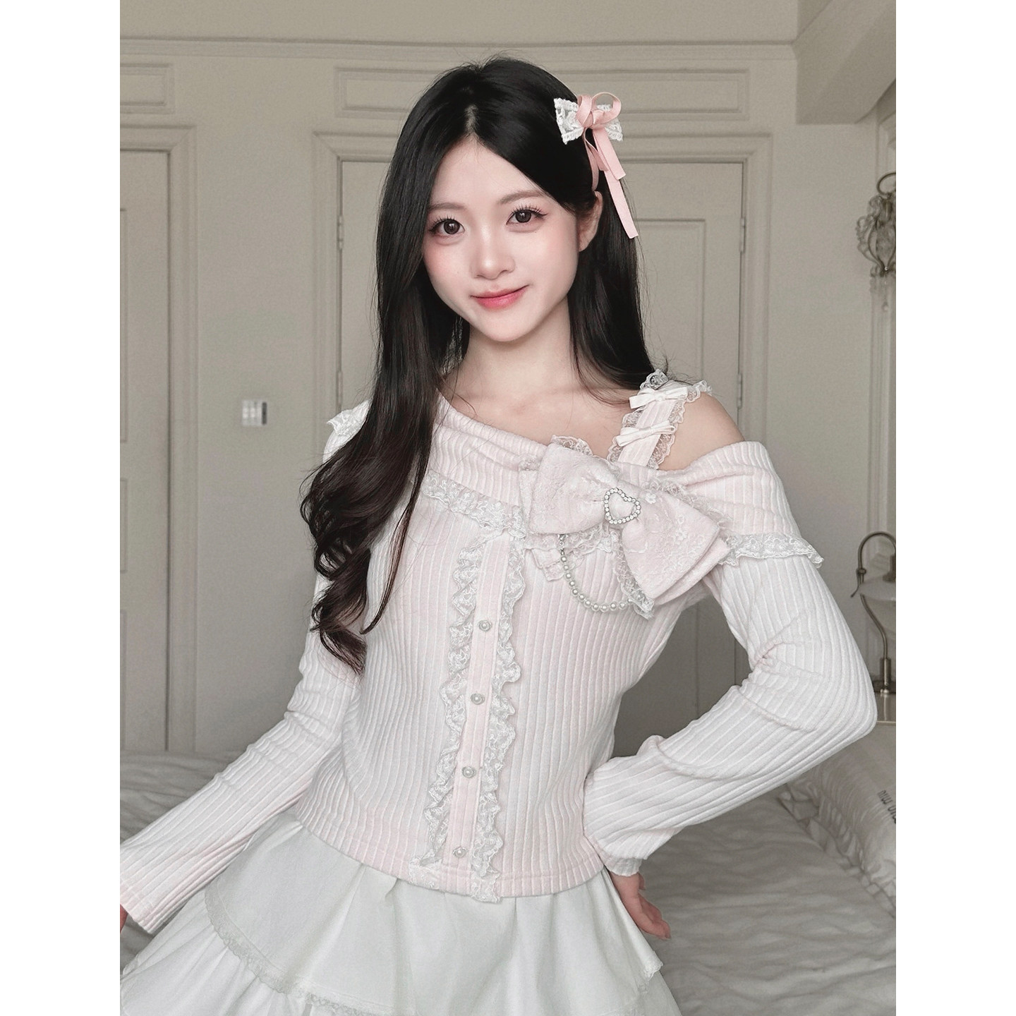 内搭上衣女秋冬可爱洛丽塔 洋装 lolita白色衬衫 日系软妹娃娃领长袖