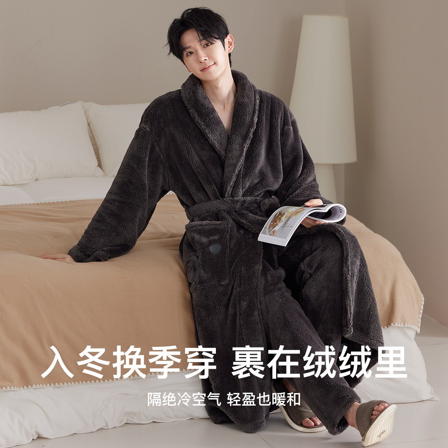 长款 2025珊瑚绒保暖睡衣男士 浴袍秋冬浴衣 新款 加厚加绒睡袍男冬季