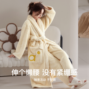 法兰绒家居服睡衣女秋冬加厚加绒保暖冬珊瑚绒睡袍男中长浴袍情侣