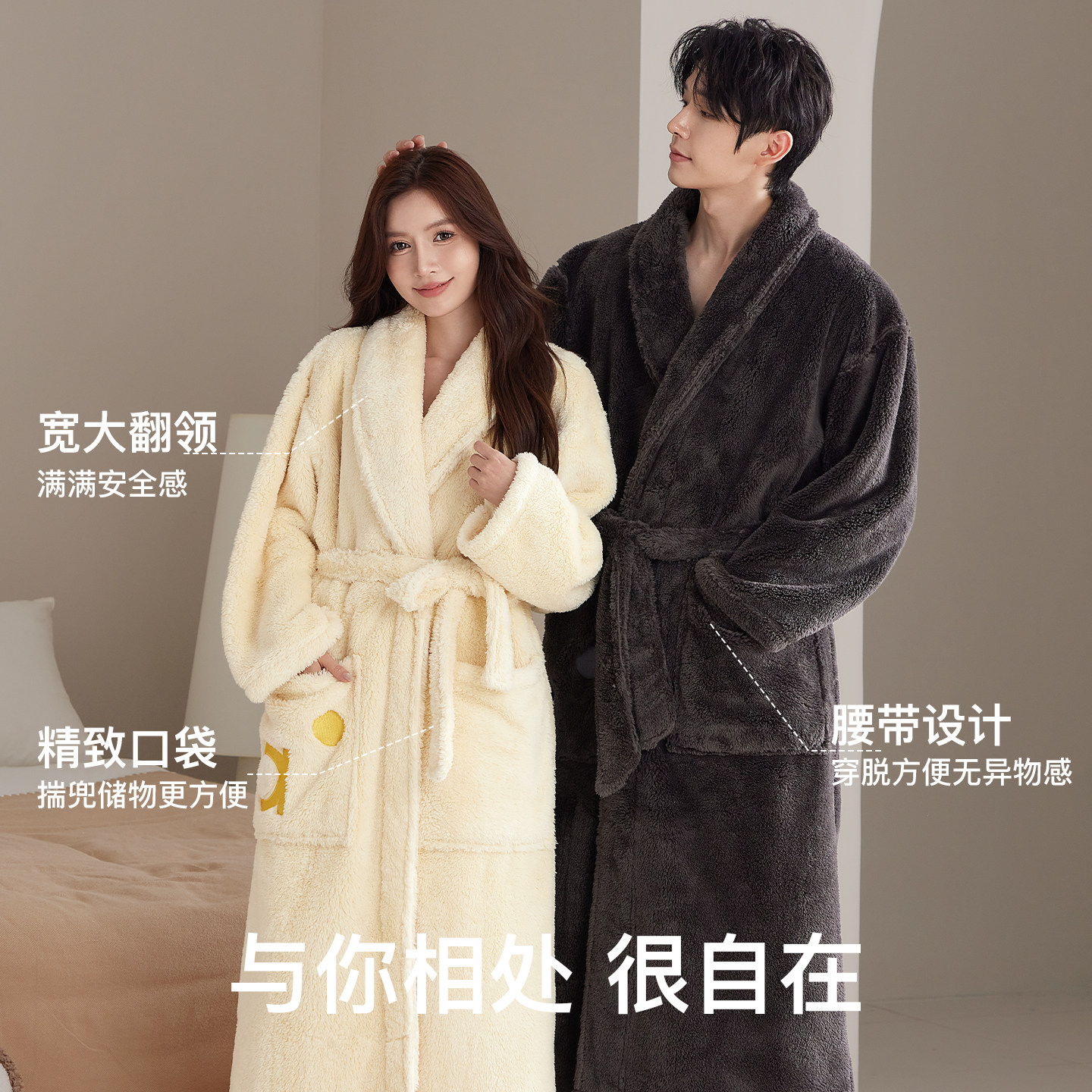 中长款 冬保暖睡衣家居服套装 睡袍毛绒浴袍加厚情侣款 三层加厚