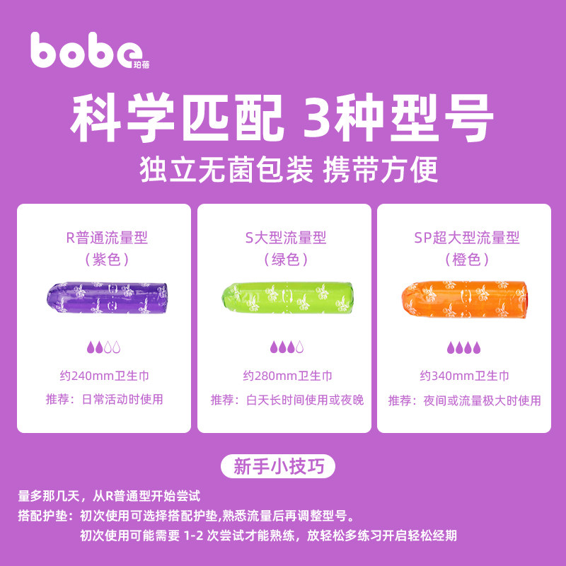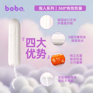 bobe珀蓓棉条无香型游泳内置卫生巾敏感肌适用经期便携棉条指入式