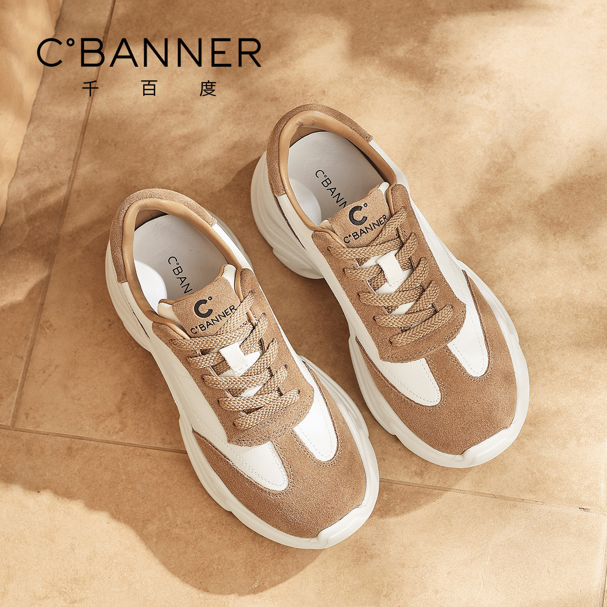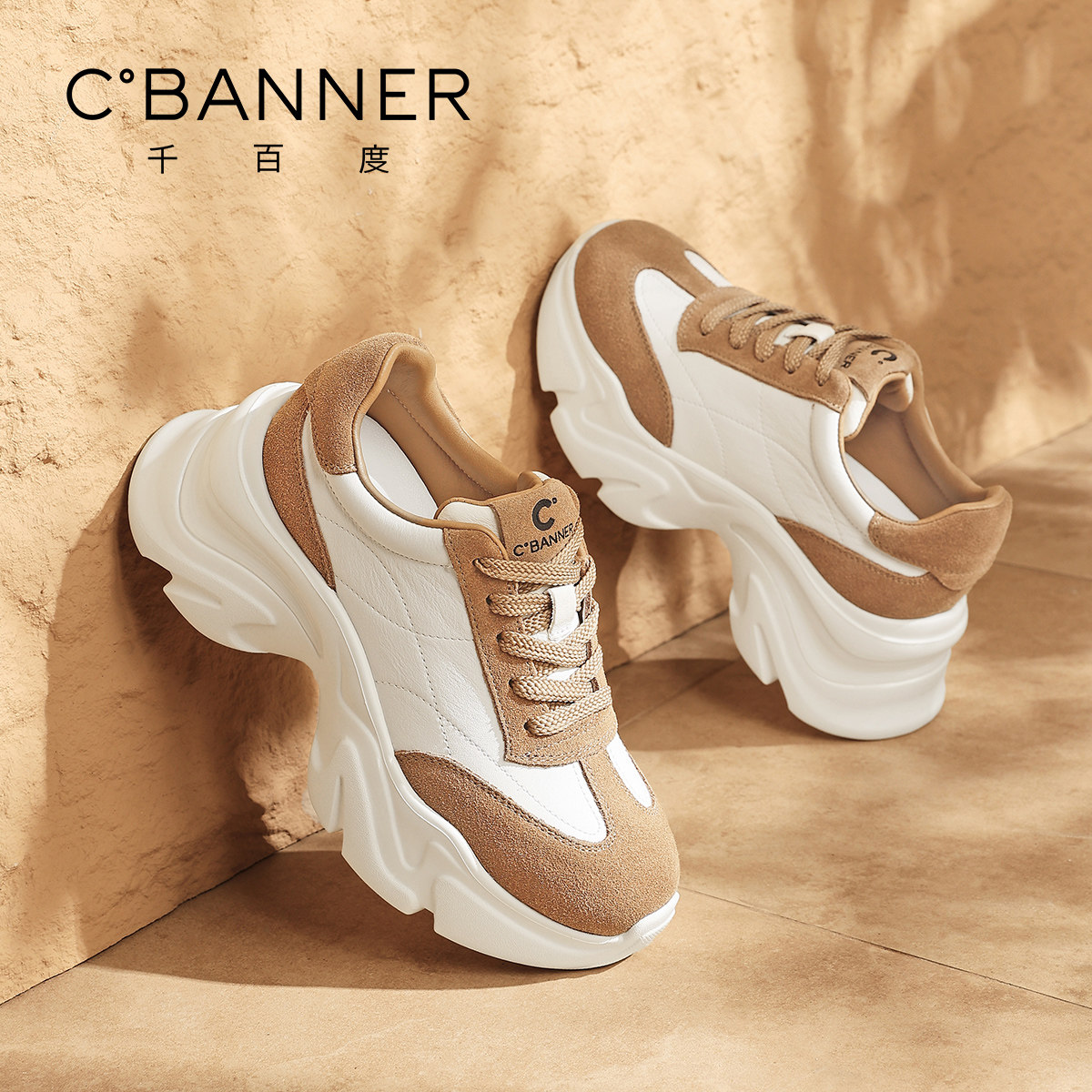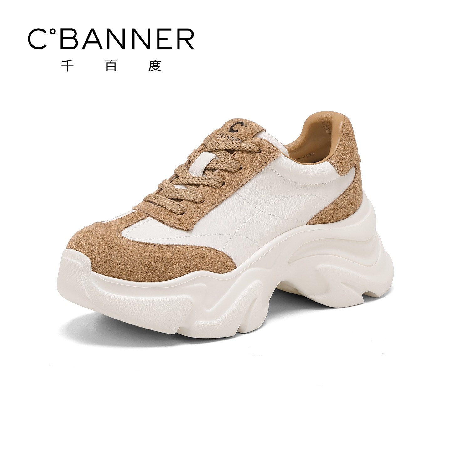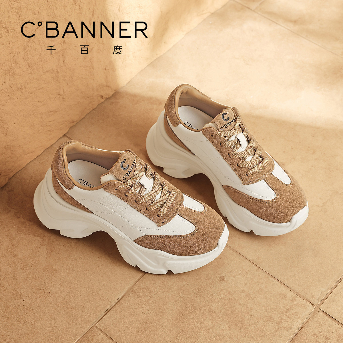 女春季 女鞋 新款 百搭增高运动休闲鞋 时尚 千百度真皮厚底老爹鞋