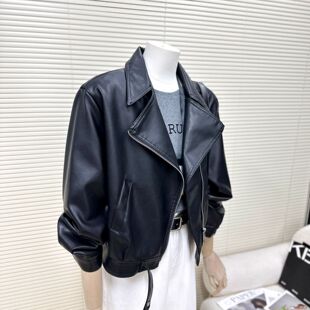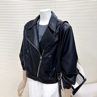 机车风皮夹克 气质宽松休闲短款 海宁小皮衣外套女2025秋冬新款 时尚