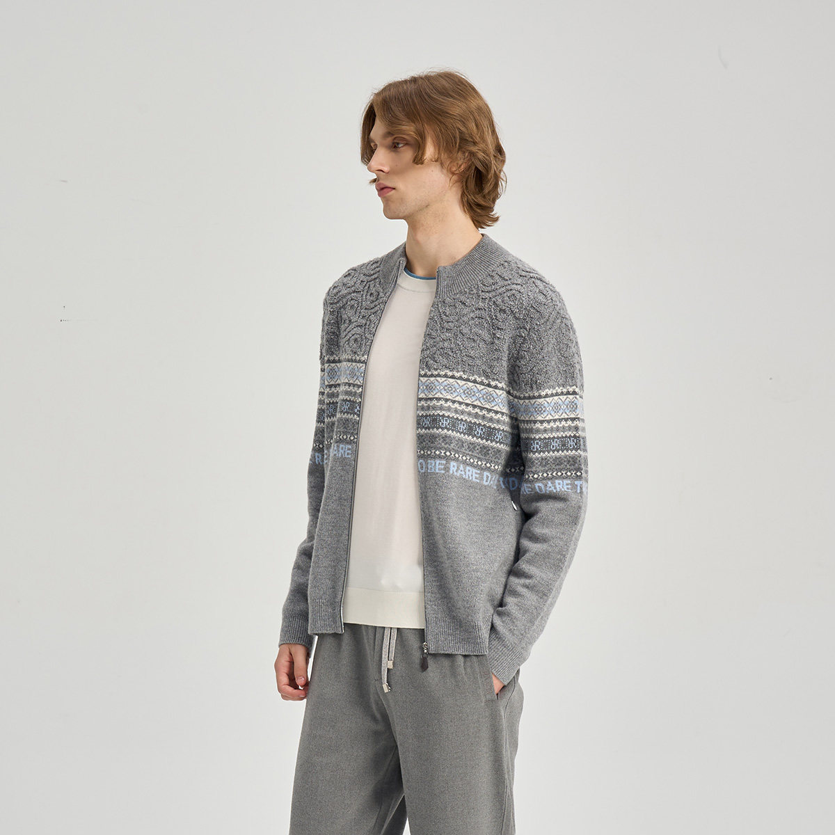 羊毛混纺男费尔岛灰色毛开衫 2025秋冬新款 外套 RARE威雅男装 情侣款