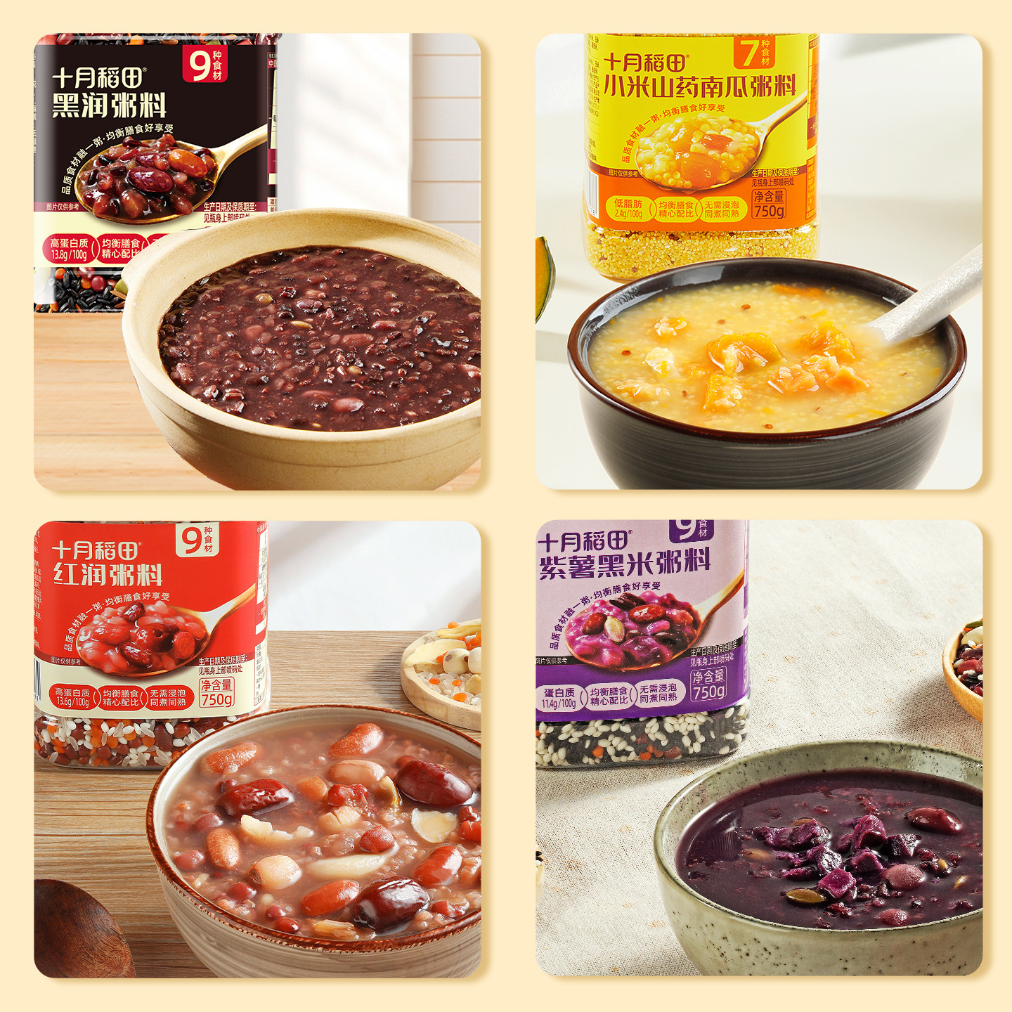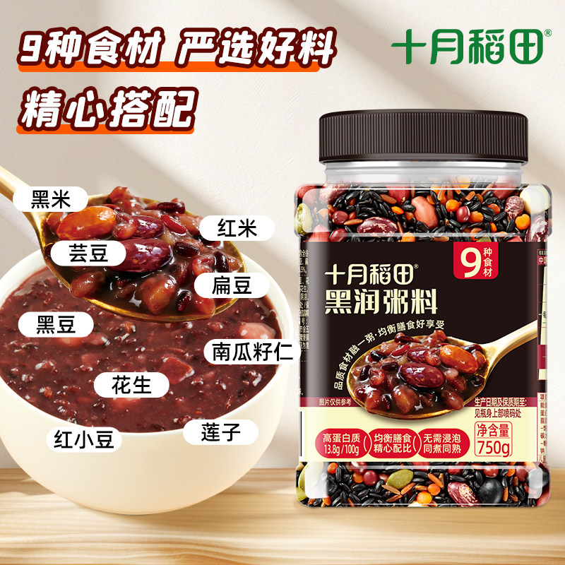 十月稻田黑润粥料750g五谷杂粮粥八宝粥黑米红米混合粗粮早餐粥