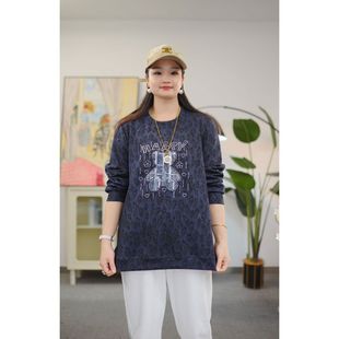 印花舒适休闲百搭内搭T恤 女装 胖mm秋冬户外感长袖 T恤木子理想大码