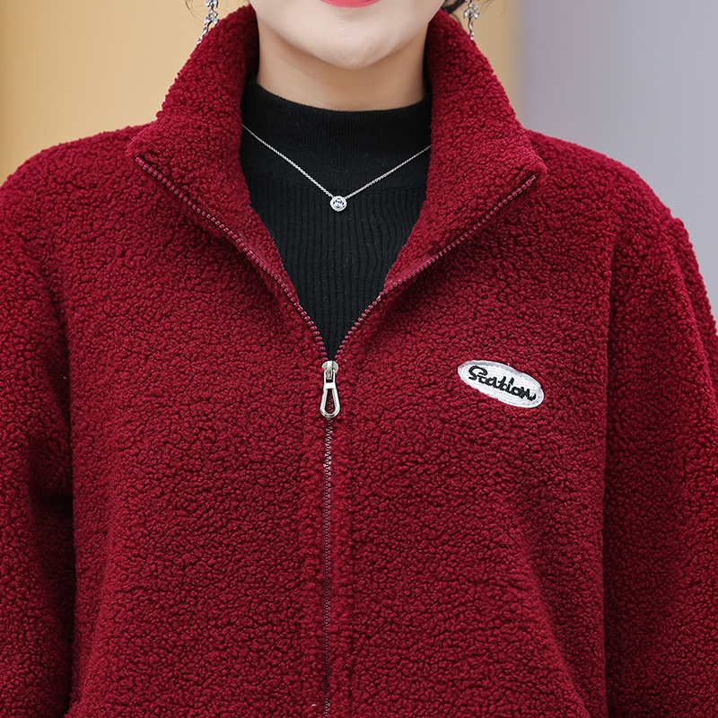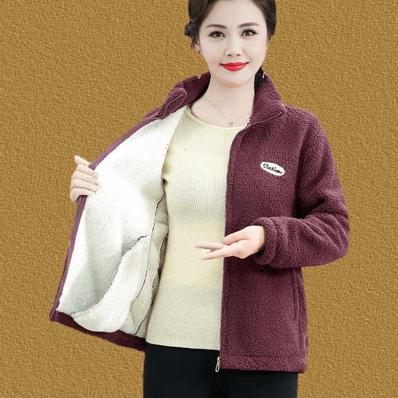 时尚 双面奥利绒外套妈妈新款 休闲立领保暖抓绒上衣 冬季 中老年女装
