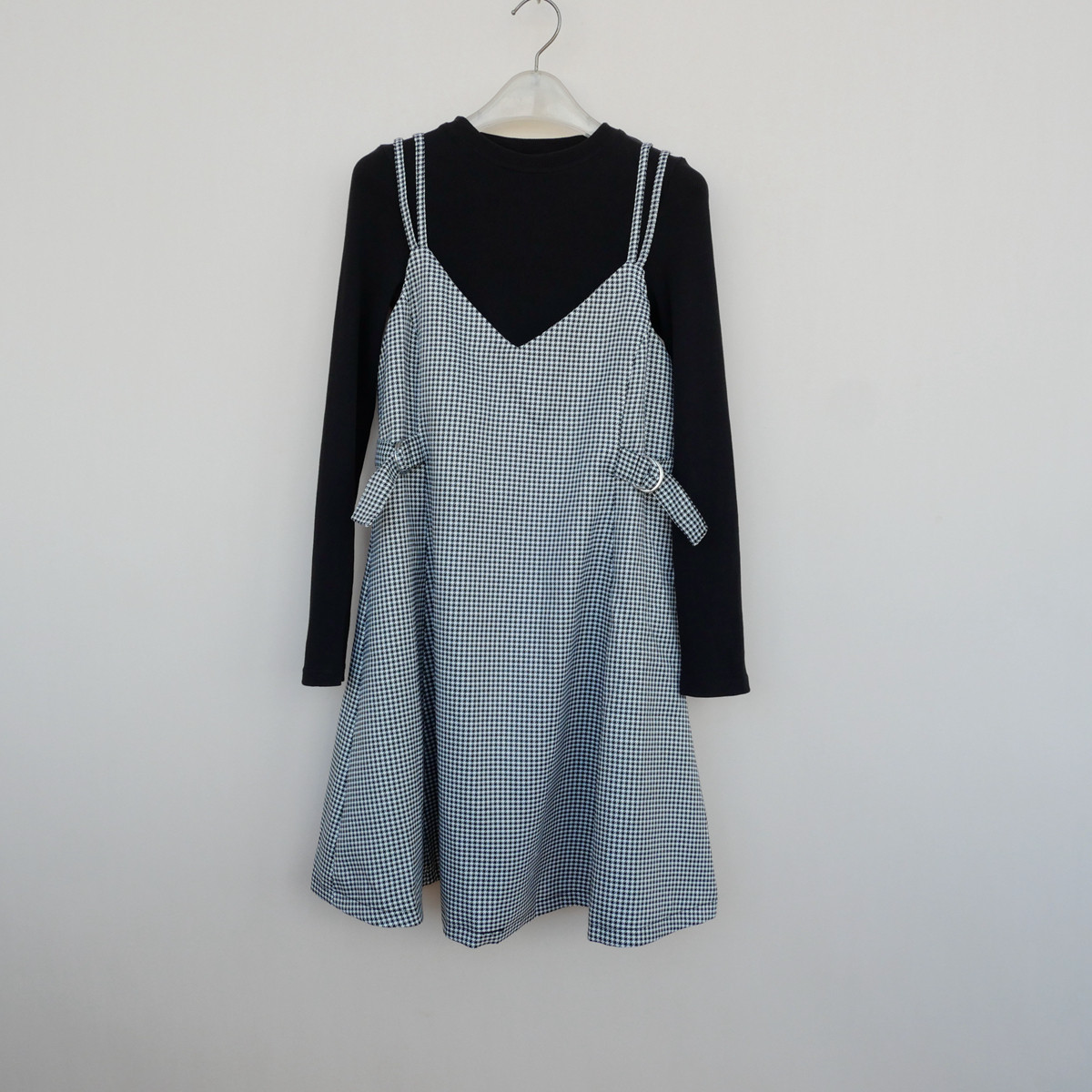 拉系列SML正品 女秋冬厚柔千鸟格吊带裙两件套5A3711格子混色 清仓