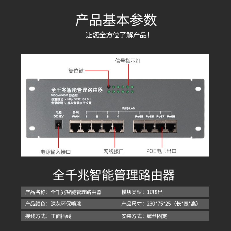 千兆网络交换机模块一进七出家用无线路由器模块千兆网络模块