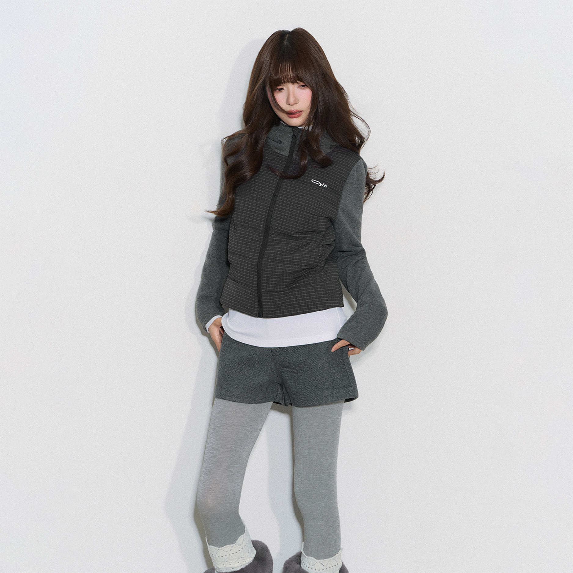 CyNi 格纹拼接假两件连帽上衣次显瘦排骨羽绒服外套 薄暖新序