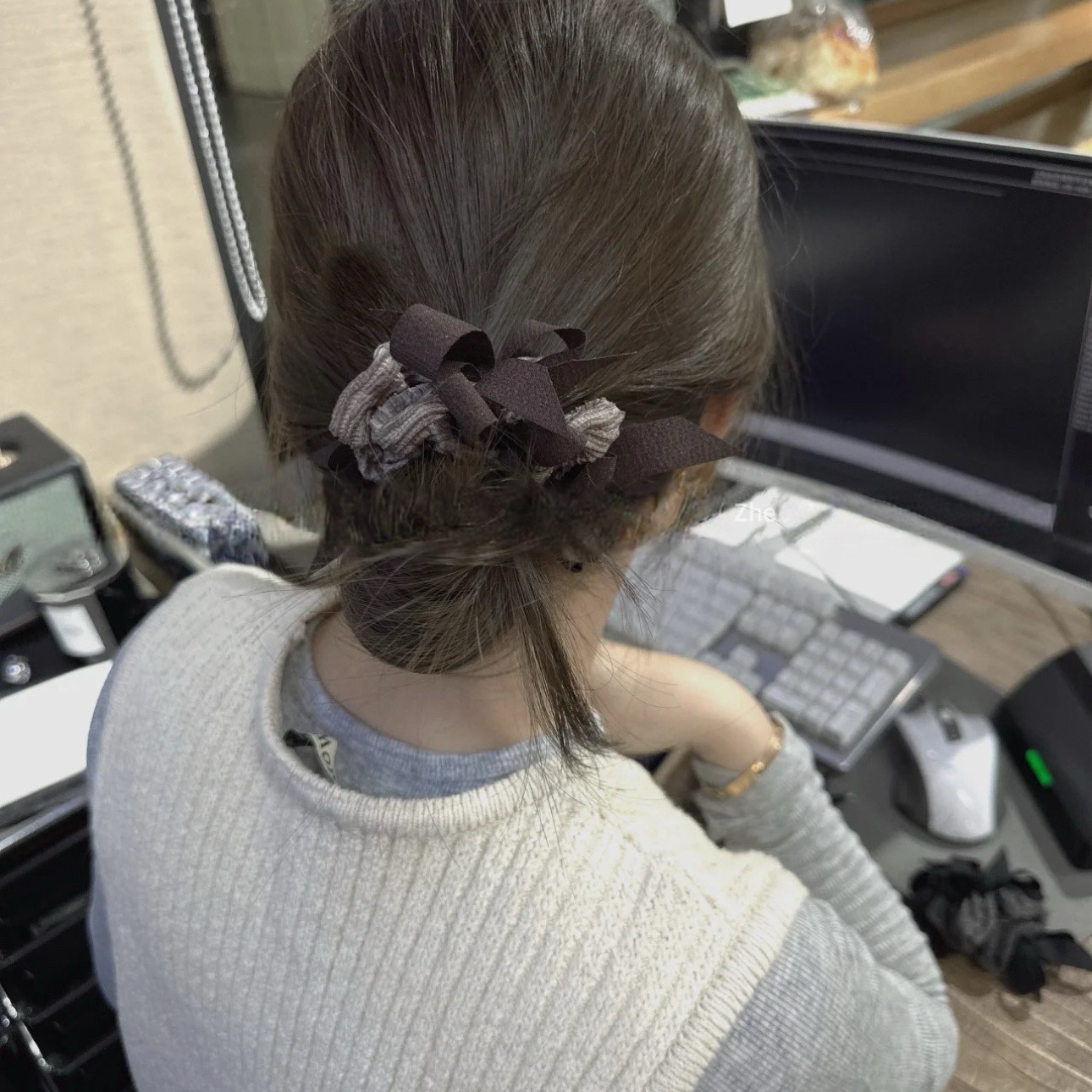 韩系爆款 小众编织蝴蝶结大肠发圈显发量丸子头发绳高级感马尾头绳