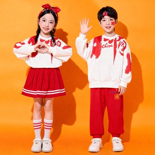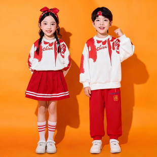 儿童啦啦队演出服小学生运动会开幕式 中国风红合唱班服表演服 服装