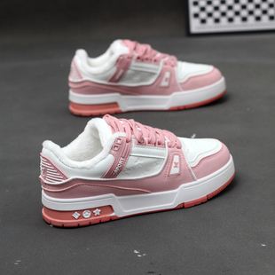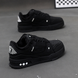 百搭运动休闲滑板鞋 加绒保暖情侣德训小众印花复古面包鞋 新款 冬季
