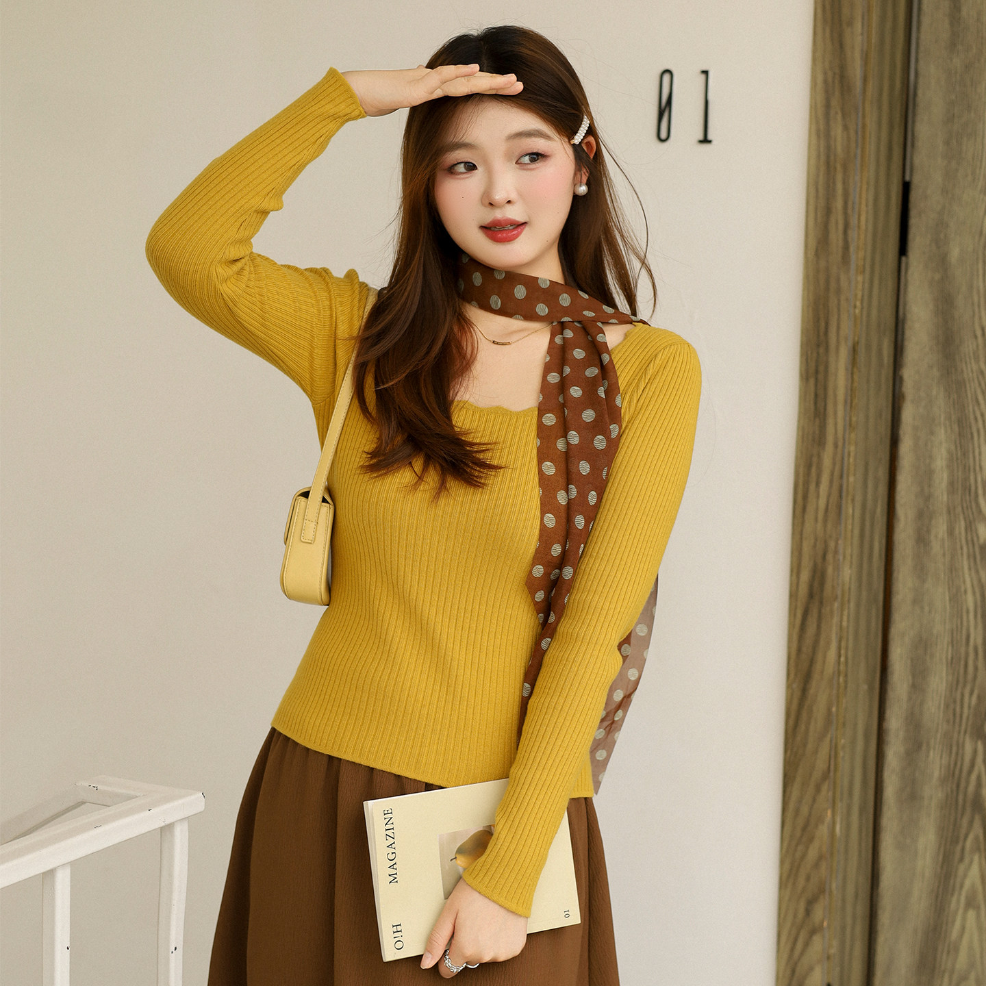 肌理T恤正肩打底针织衫 DM100大码 波浪边修身 微胖mm冬季 百分百女装