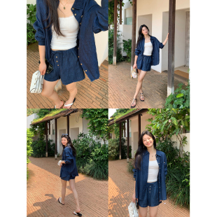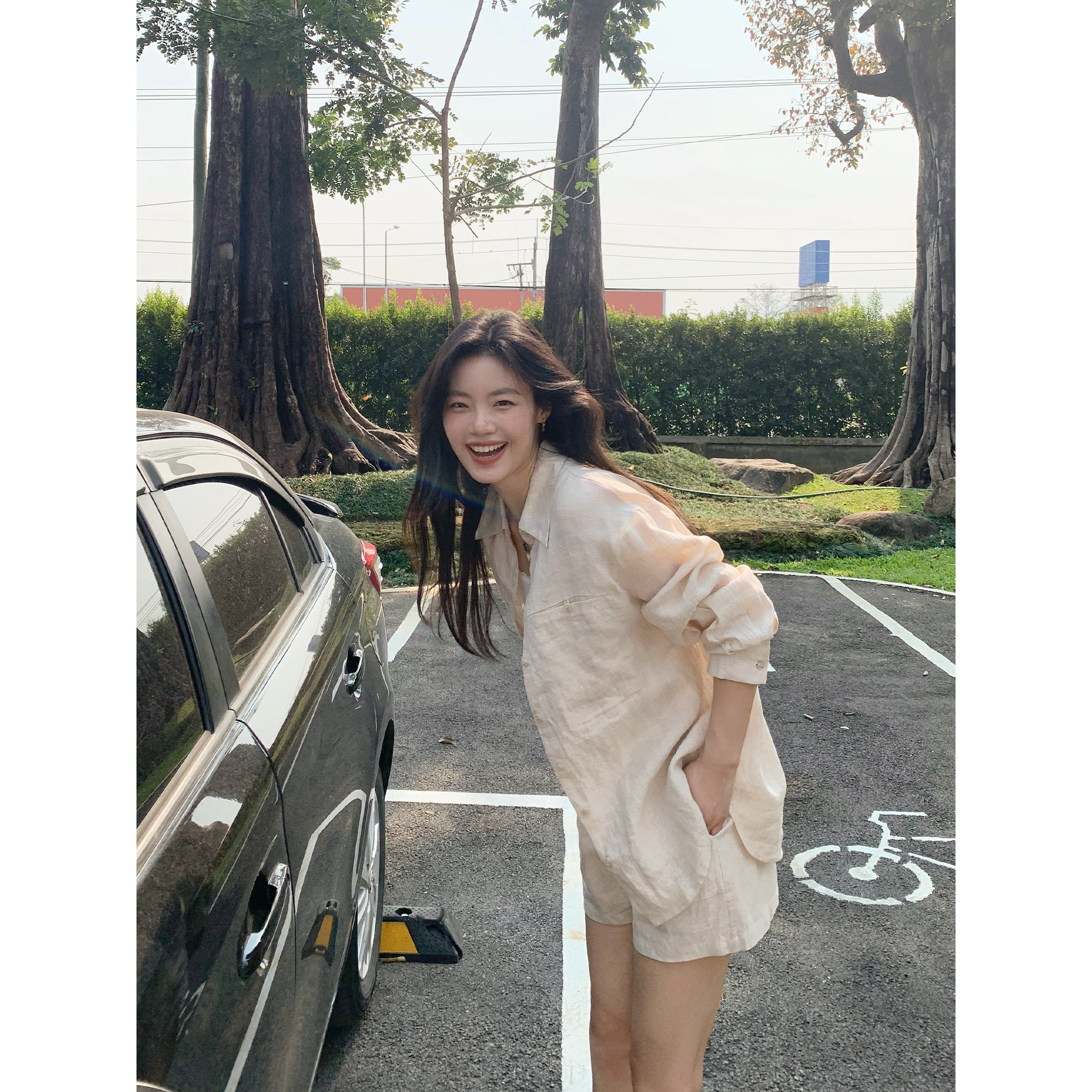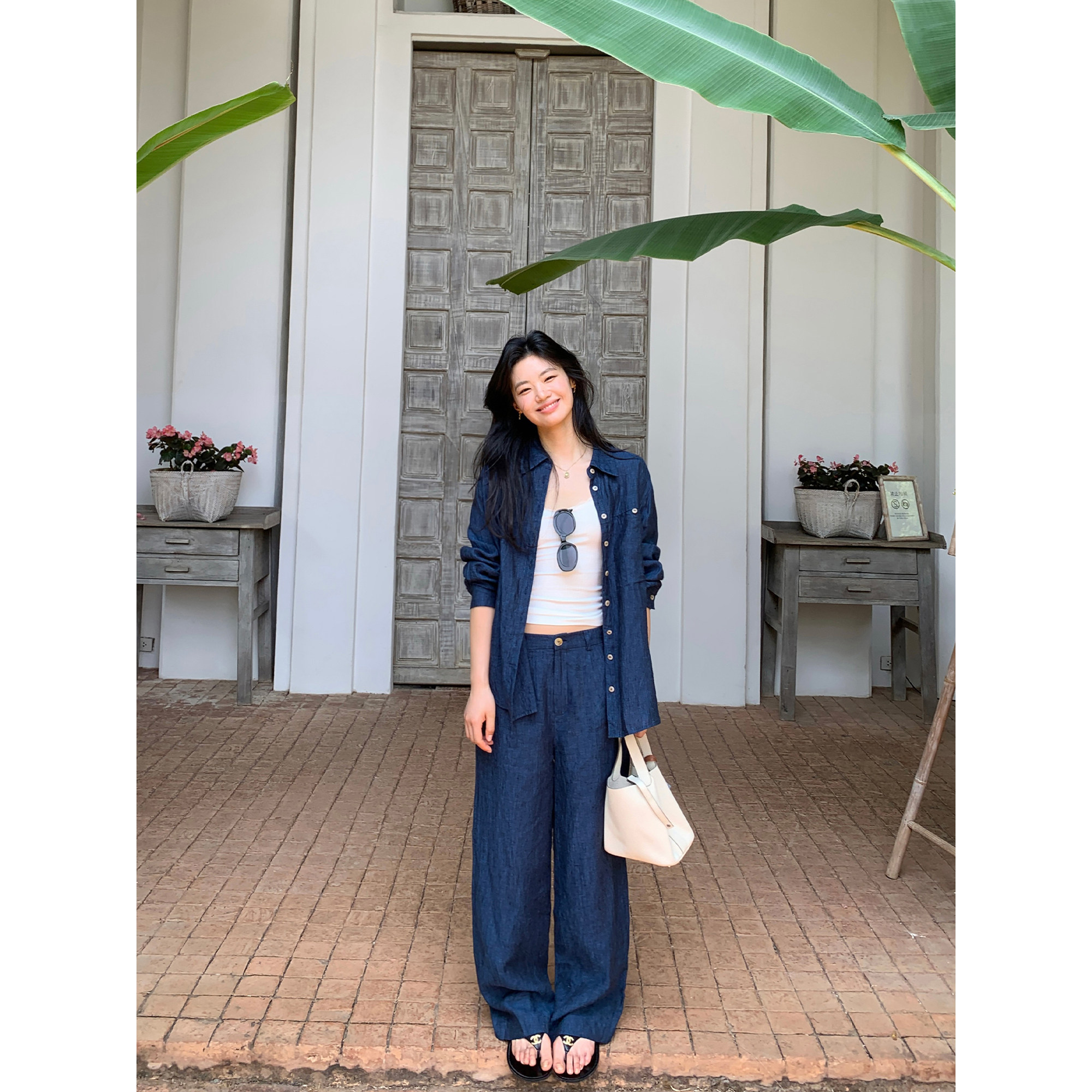 休闲短裤 pusumede松弛老钱套装 直筒长裤 衬衫 1OO亚麻宽松长袖
