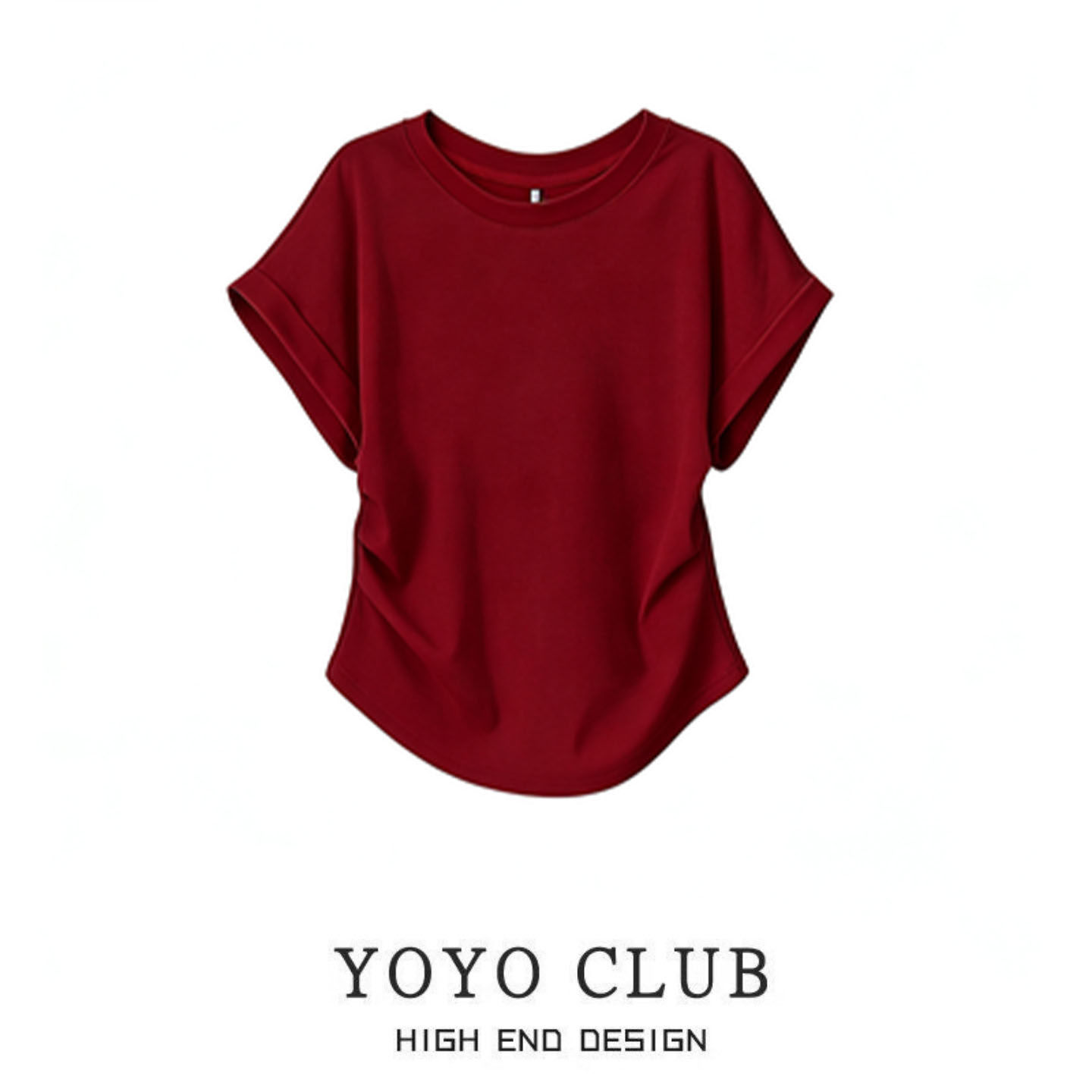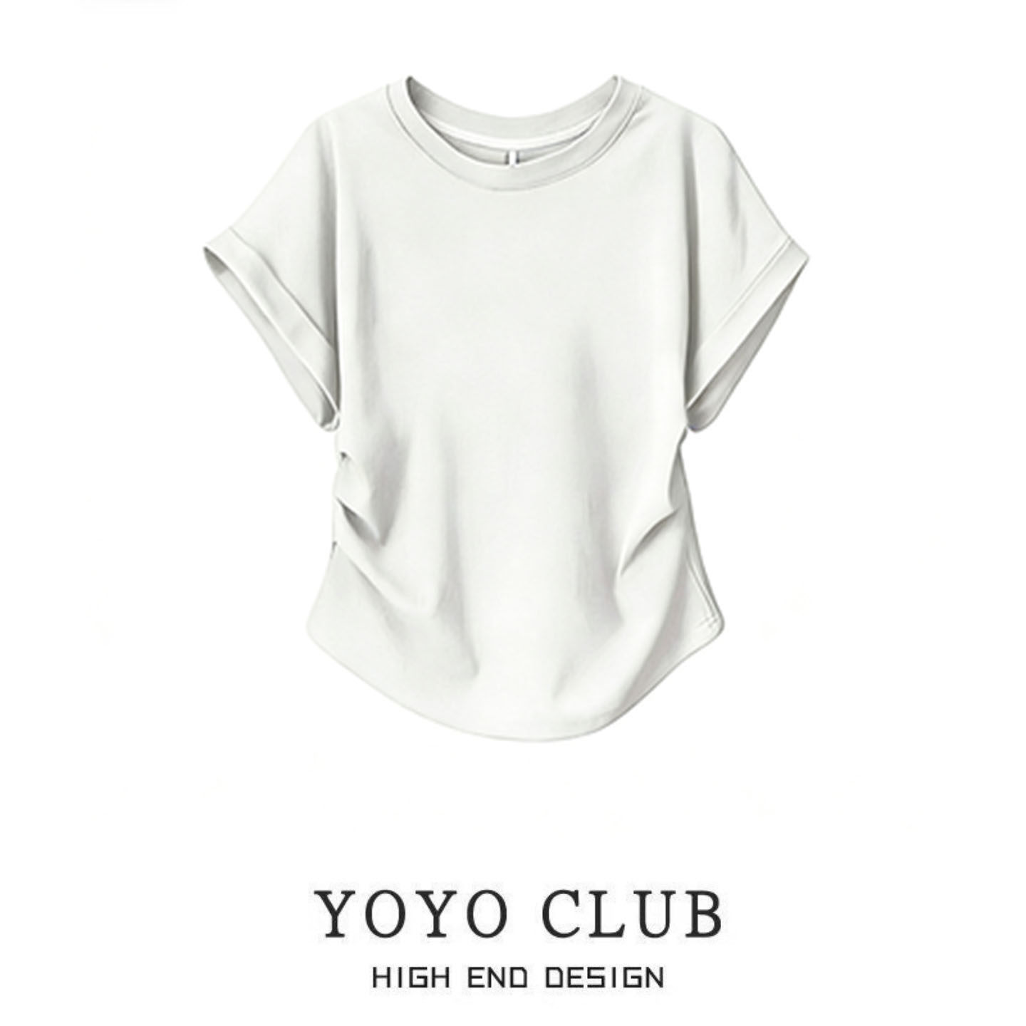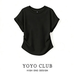 女装 品牌折扣时尚 大码 2026夏季 显瘦T恤上衣潮 设计感圆领褶皱短袖
