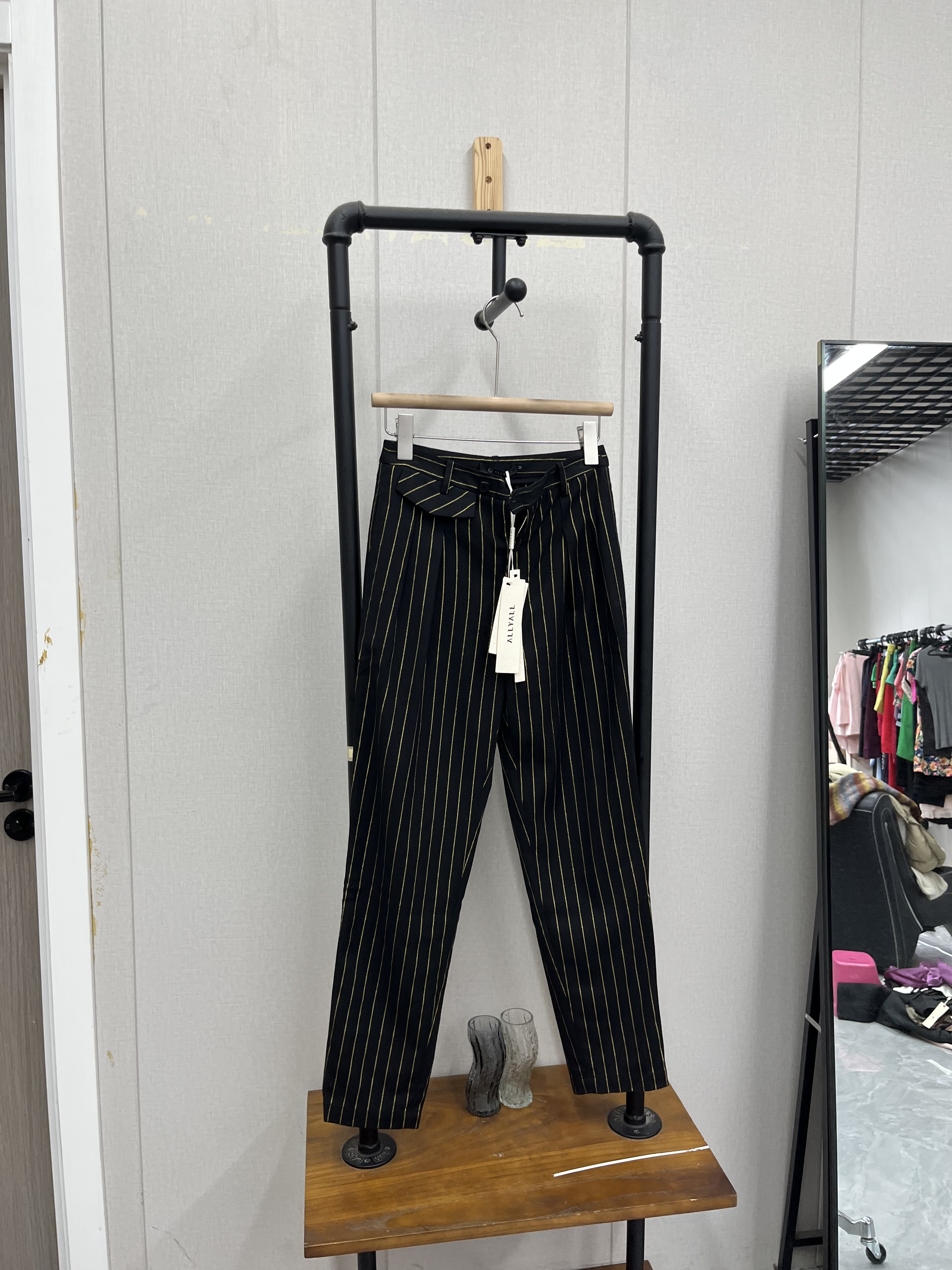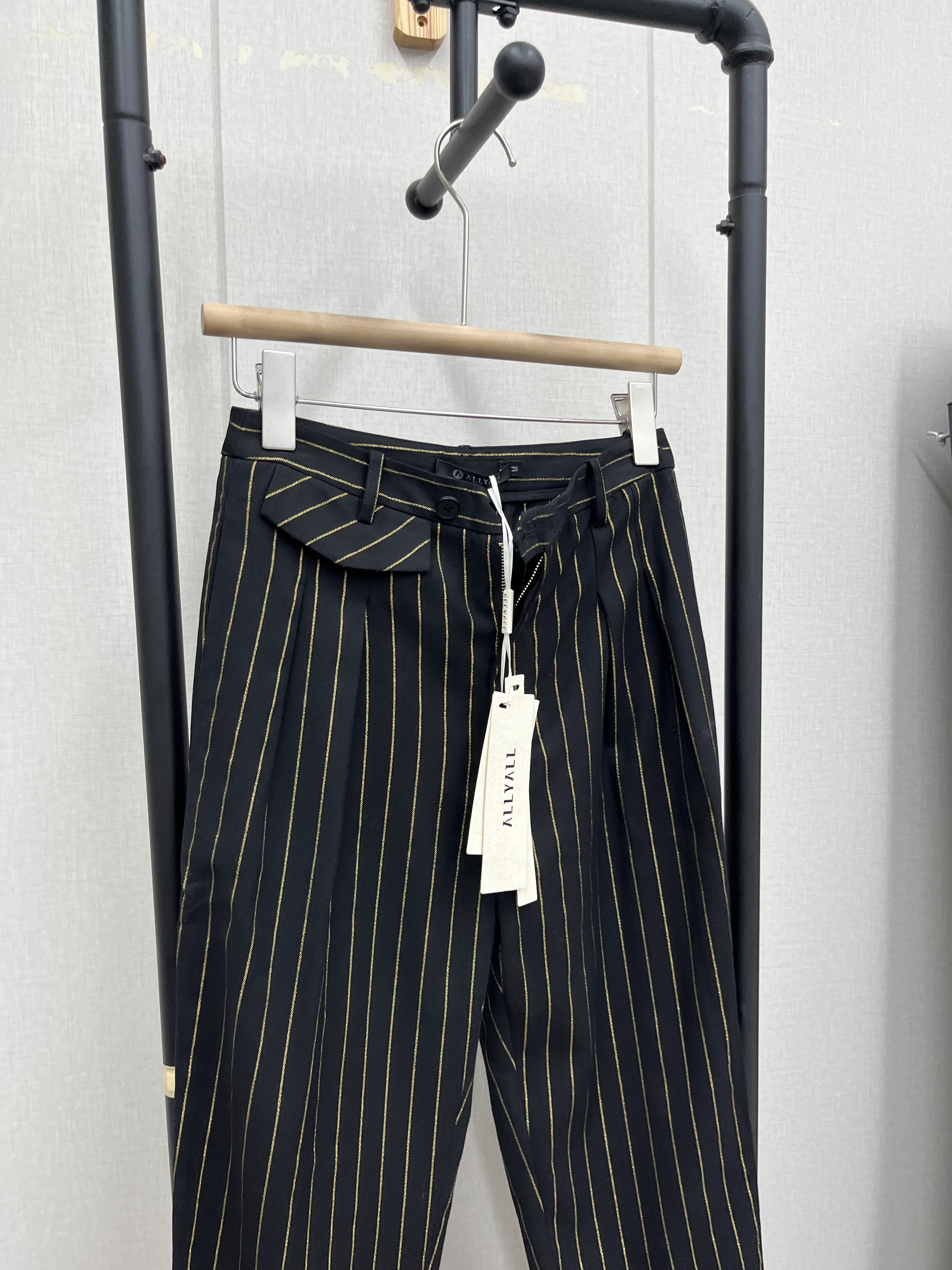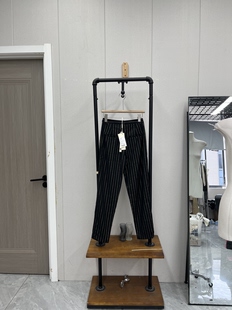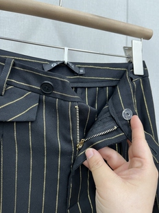 竖条纹高腰百搭春夏款 黑色气质通勤显瘦简约 休闲裤