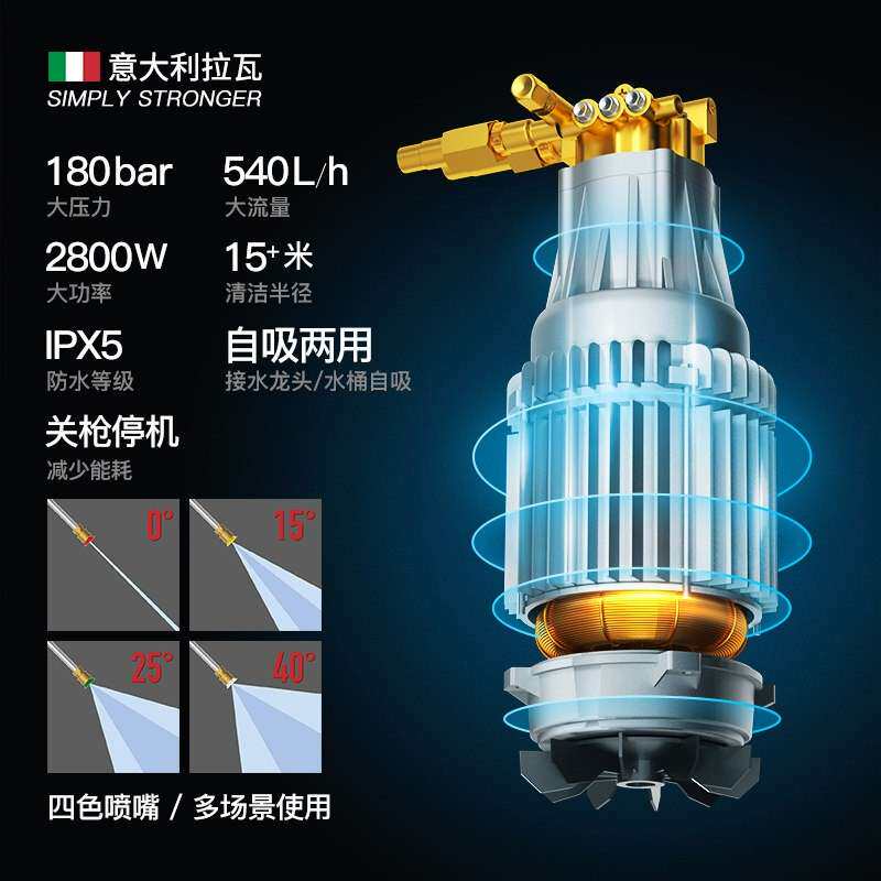 意大利拉瓦大功率家用洗车机220V商用高压清洗机洗车水泵泡沫套装