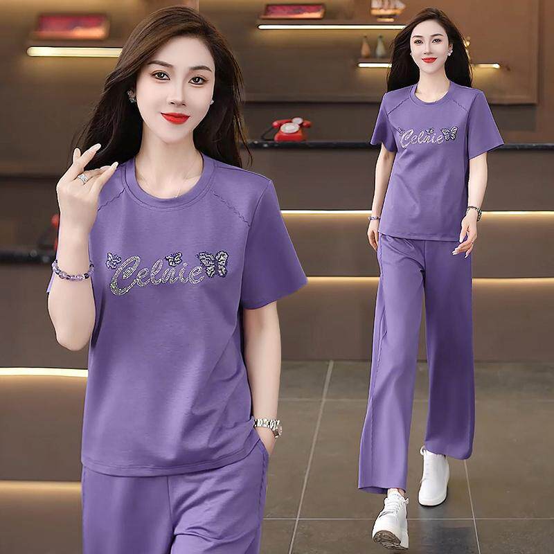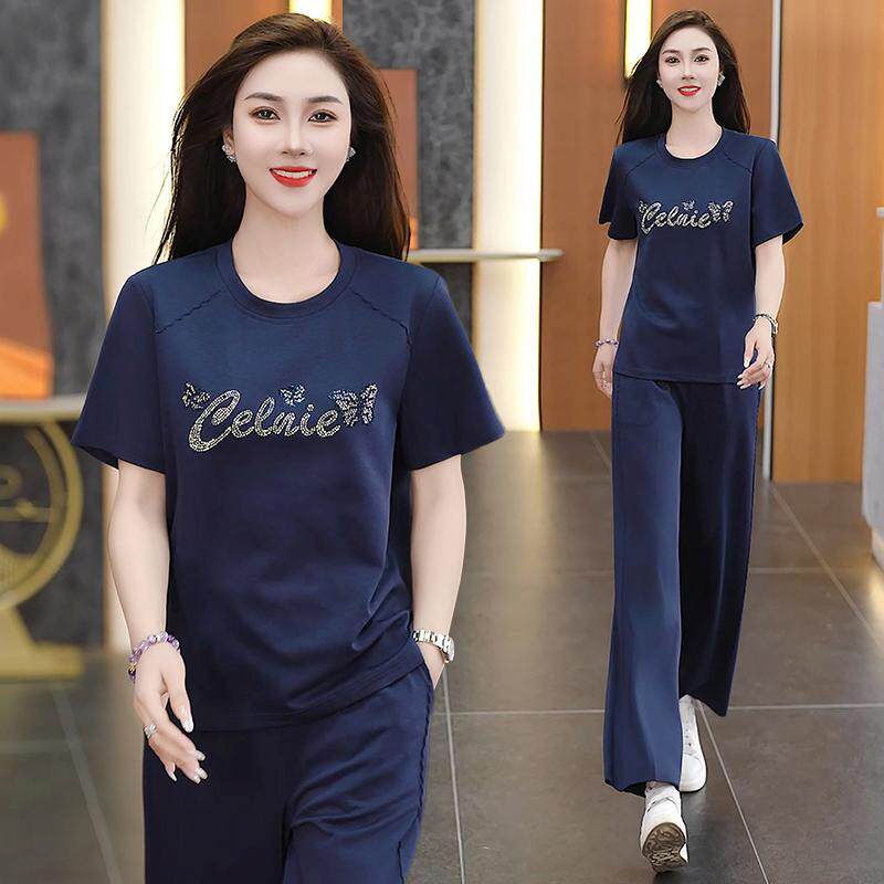 2026 年轻显瘦短袖 上衣长裤 夏季 女爆款 洋气两件套女 套装 新款