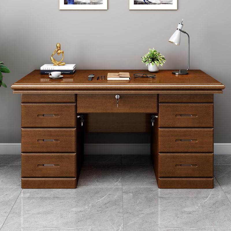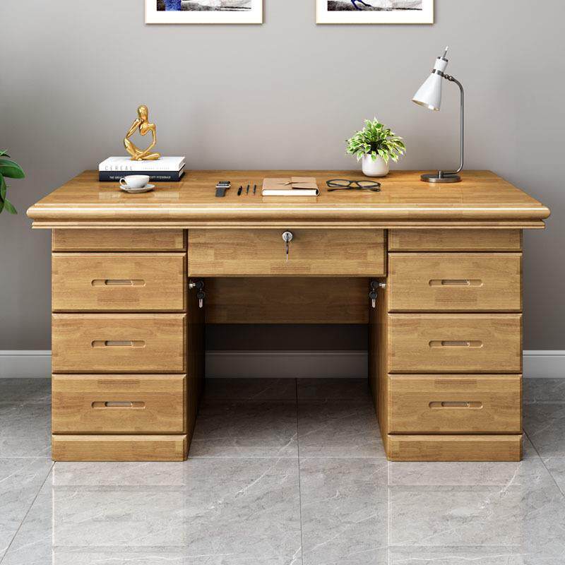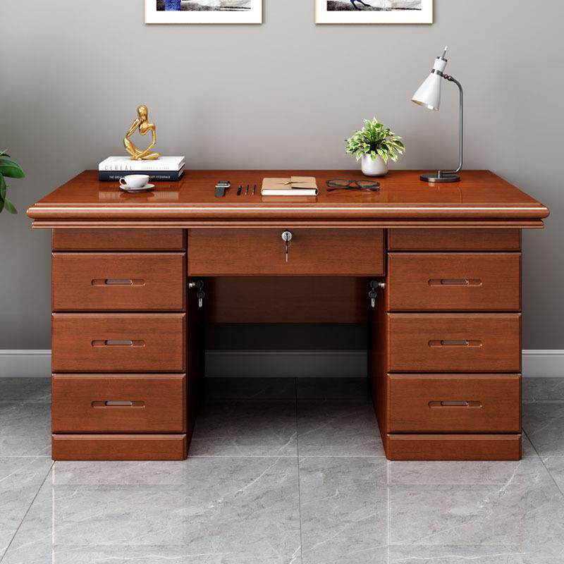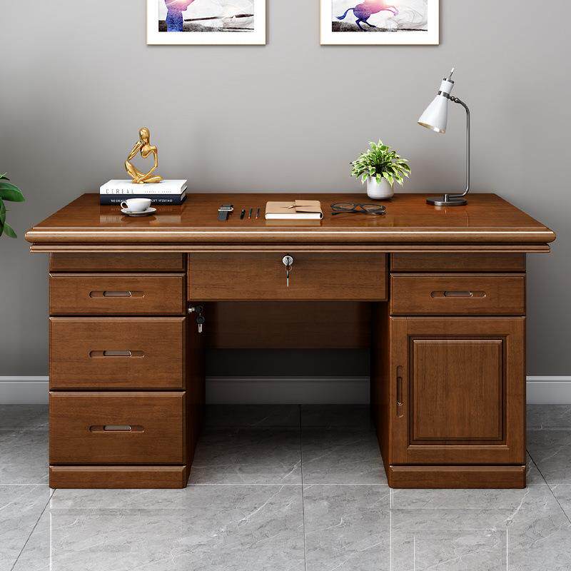 办公桌全实木书桌写字台家用房间单人台式 电脑桌带抽屉锁办公室