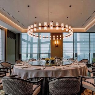 现代创意圆形餐饮包间餐厅吊灯工程款 金属玻璃酒店宴会客厅吊灯