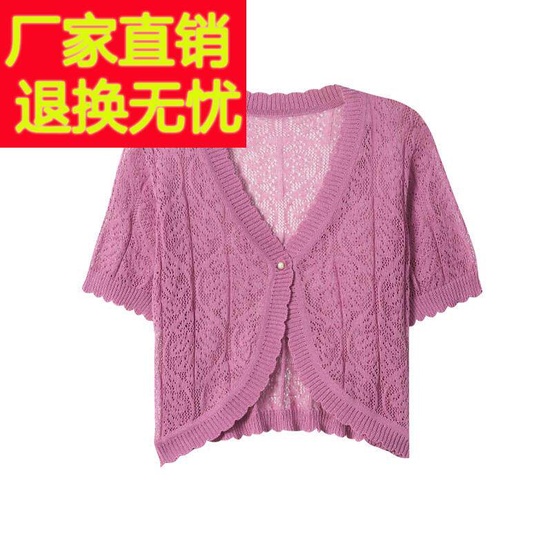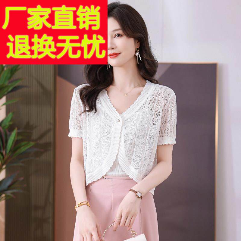 防晒空调衫 超短款 薄针织衫 衫 小披肩外套配裙子夏 女开 桑蚕丝短袖