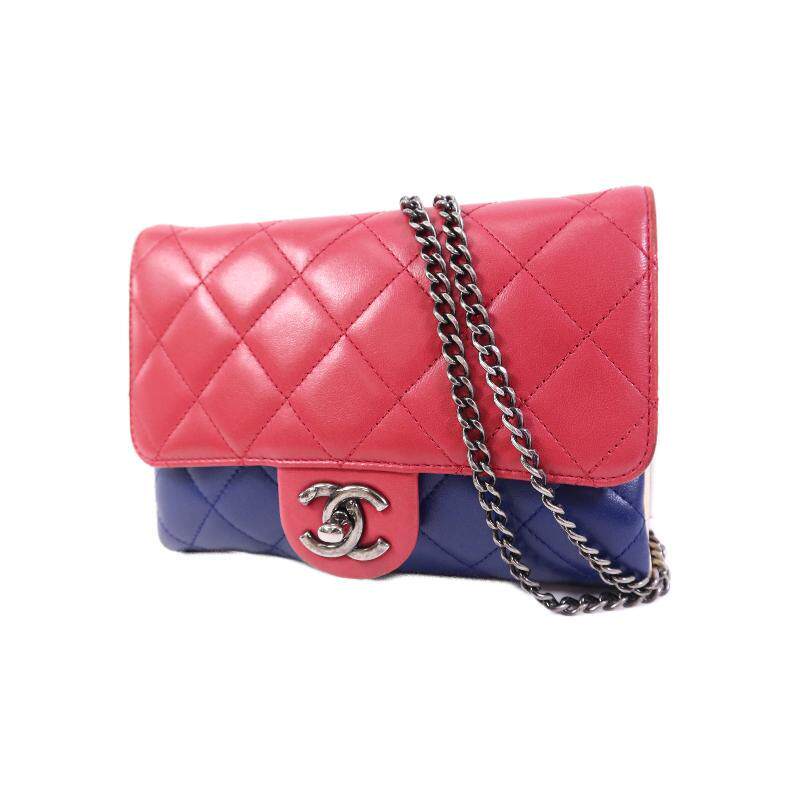 中古Chanel香奈儿女包B级9新shoulder bag斜挎包羊皮斜挎包蓝色