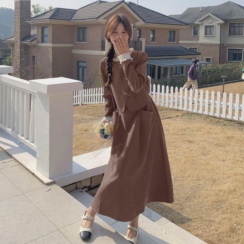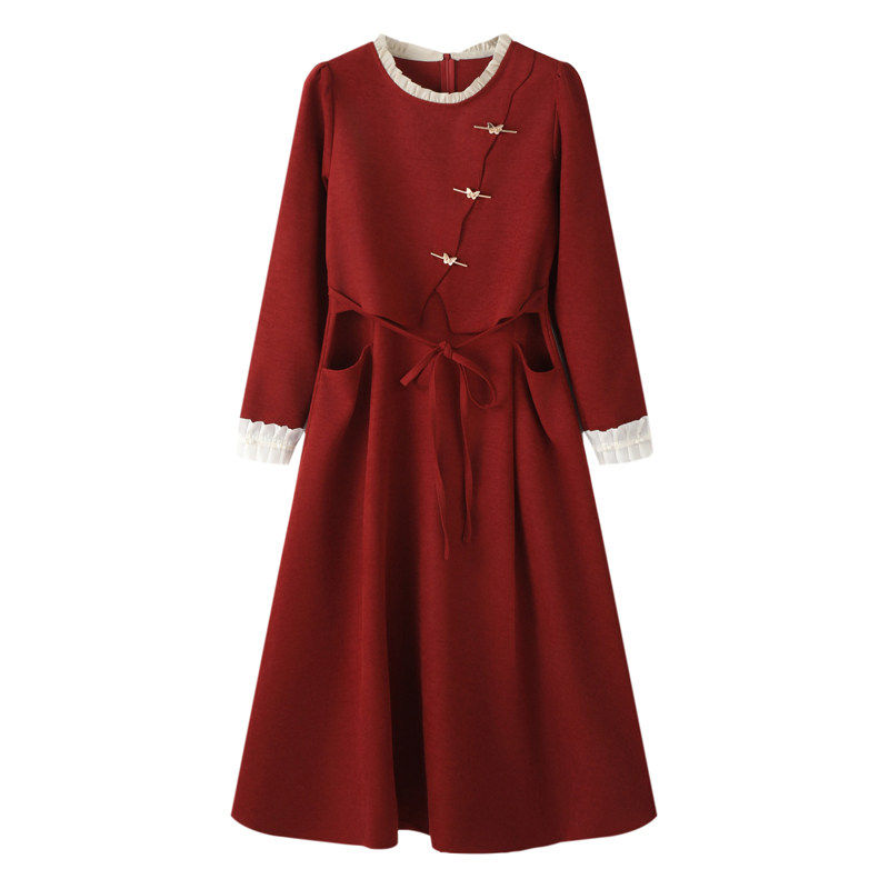 正式 女2025春秋新款 场合气质订婚长裙 国风假两件洋装 红色新中式
