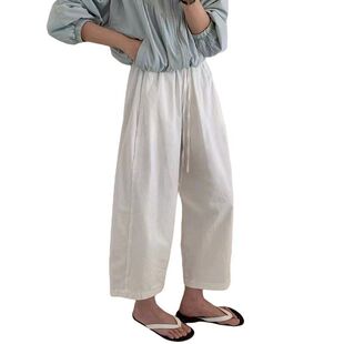 休闲九分裤 子纸片裤 夏季 洗水棉质宽松裤 子 薄款 日韩小个子阔腿裤