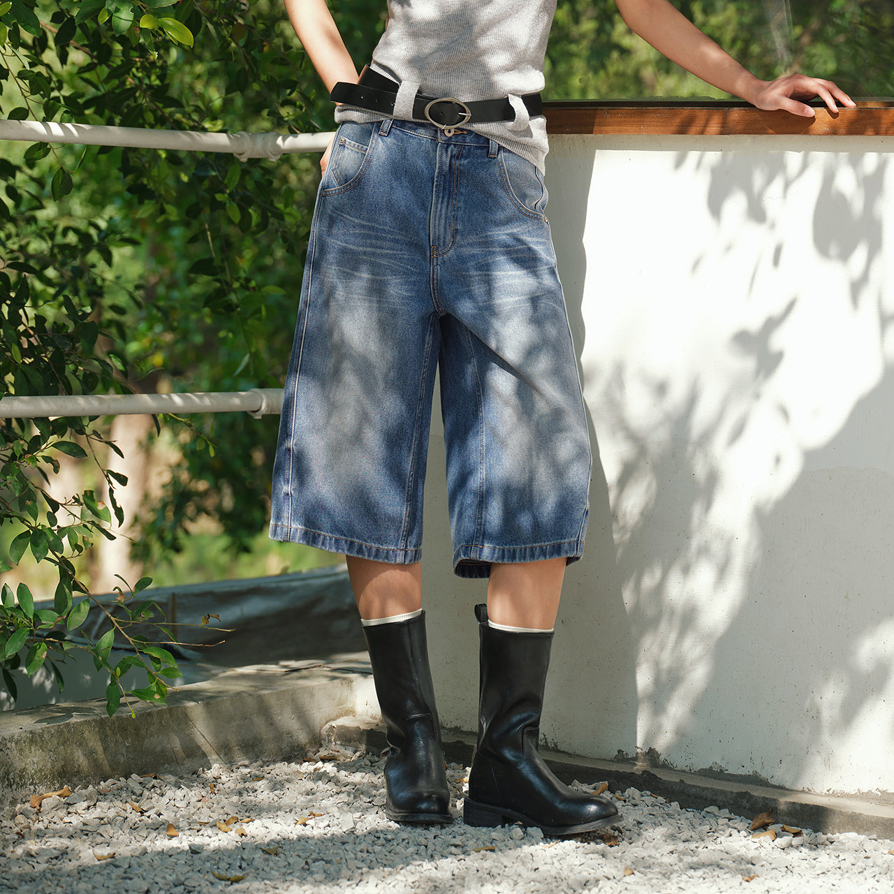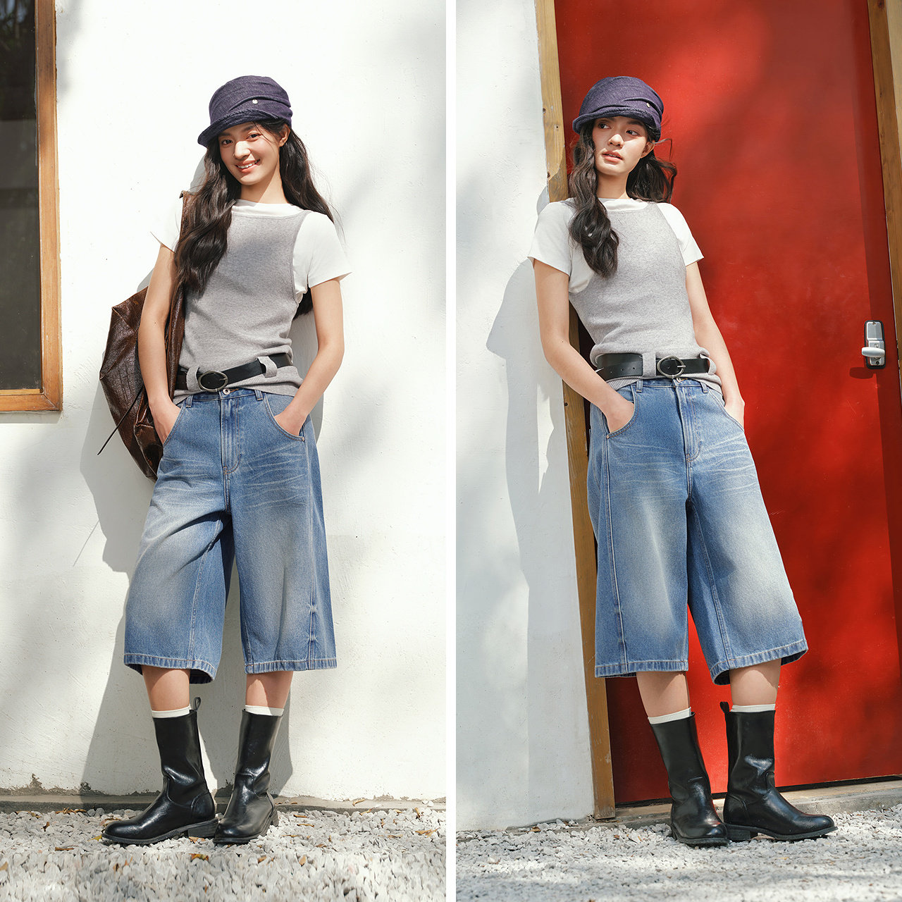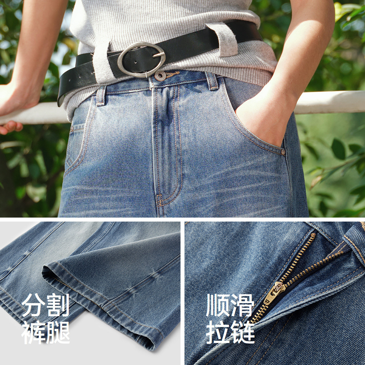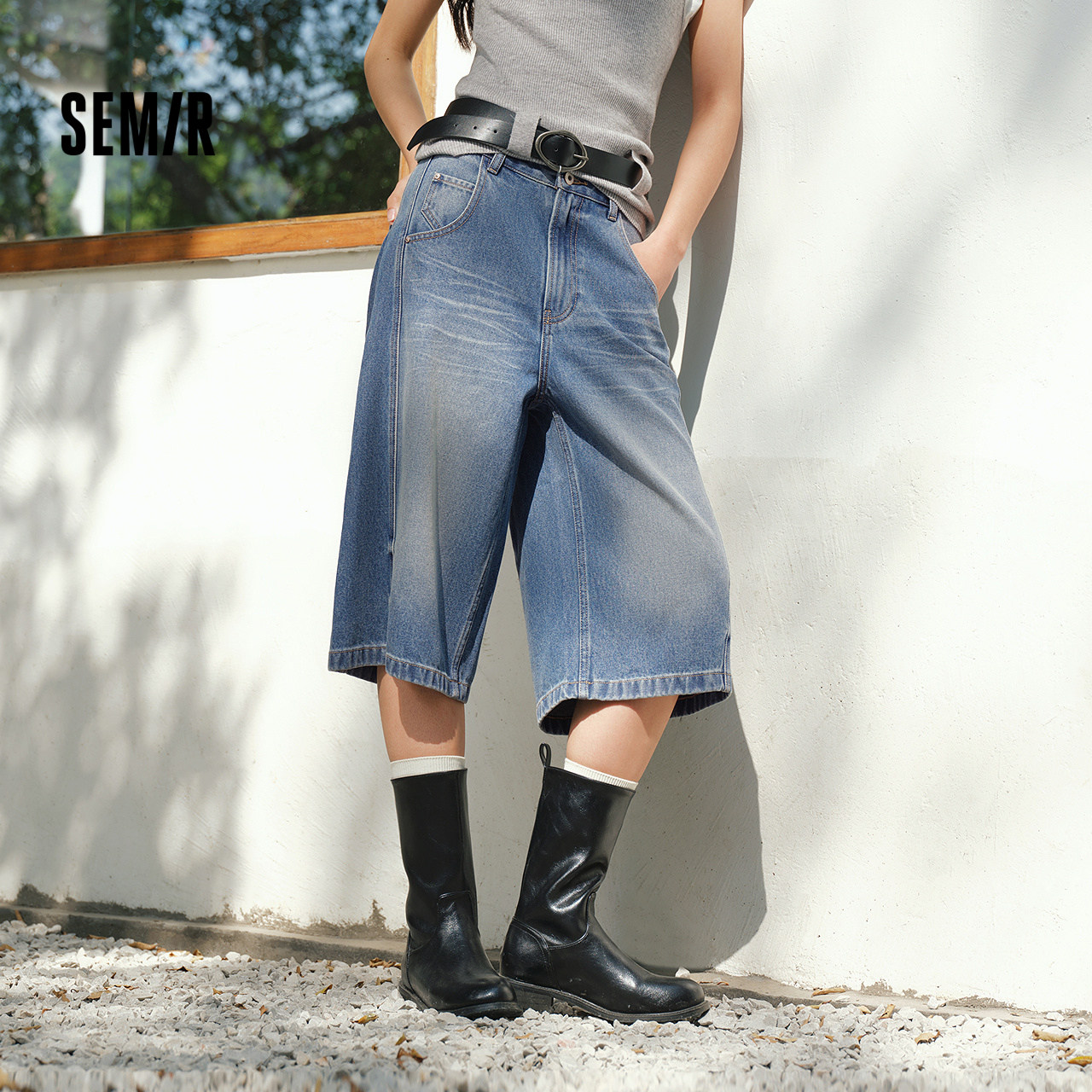 商场同款 潮酷六分裤 森马牛仔裤 分割做旧宽松2026新款 女夏季 森柔