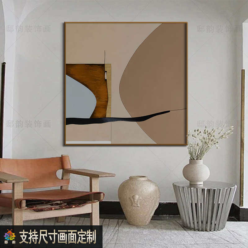 侘寂风卧室床头方形挂画民宿酒店房间装 样板间抽象无框画 饰画软装