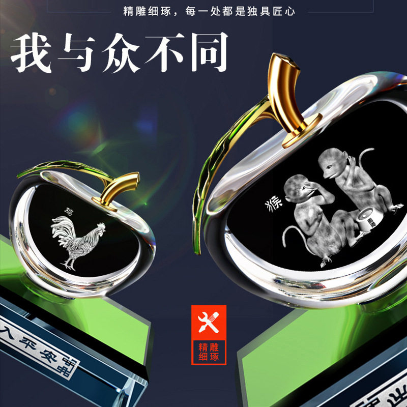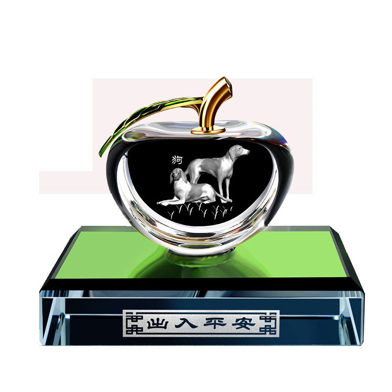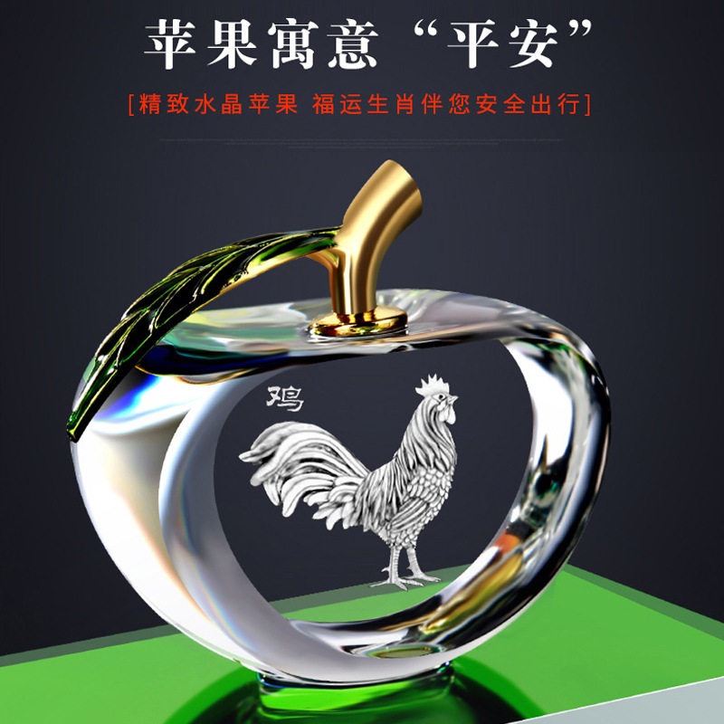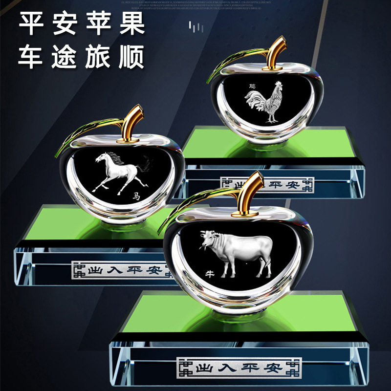 生肖水晶苹果汽车香水摆件车载香水座车用水晶内雕十二生肖香水座