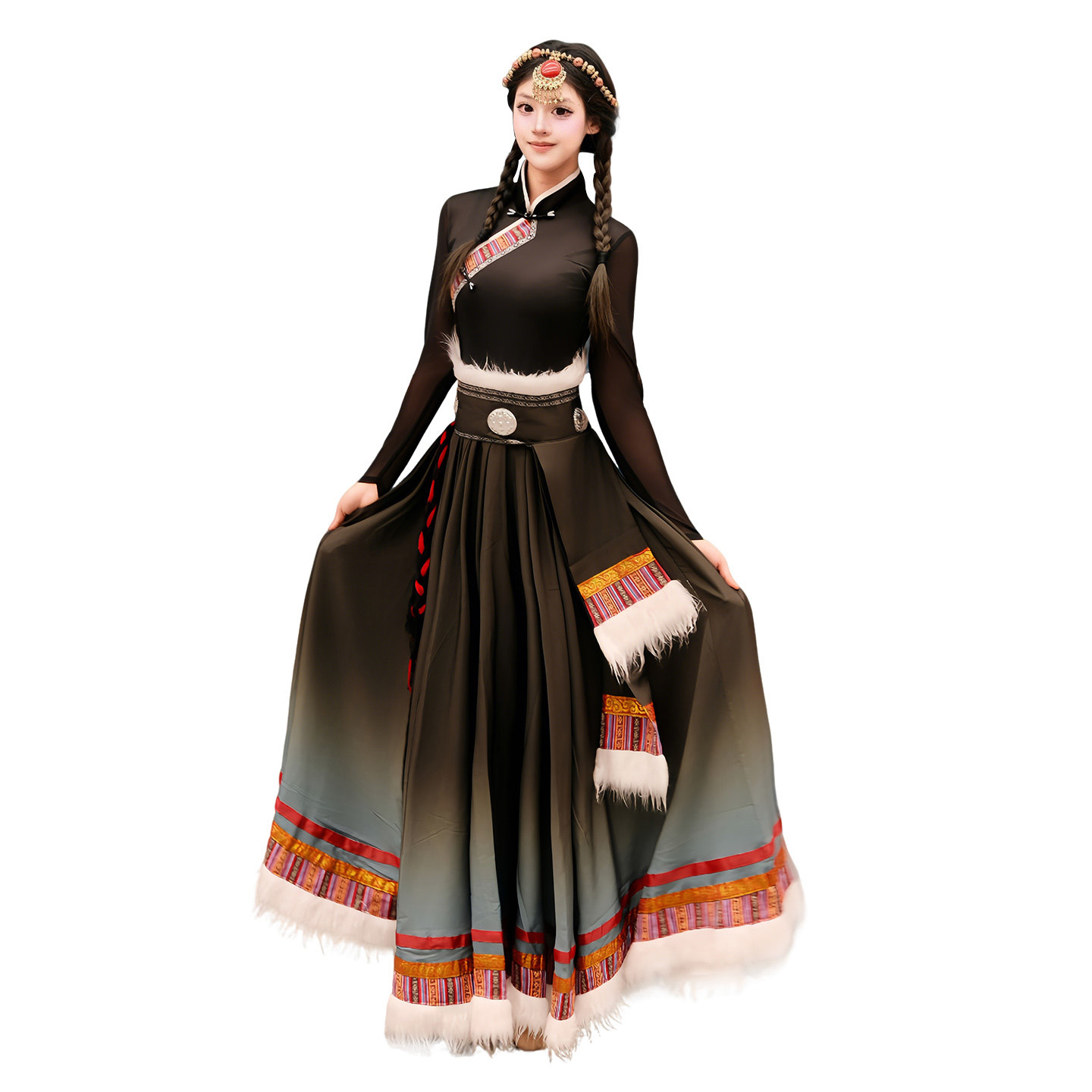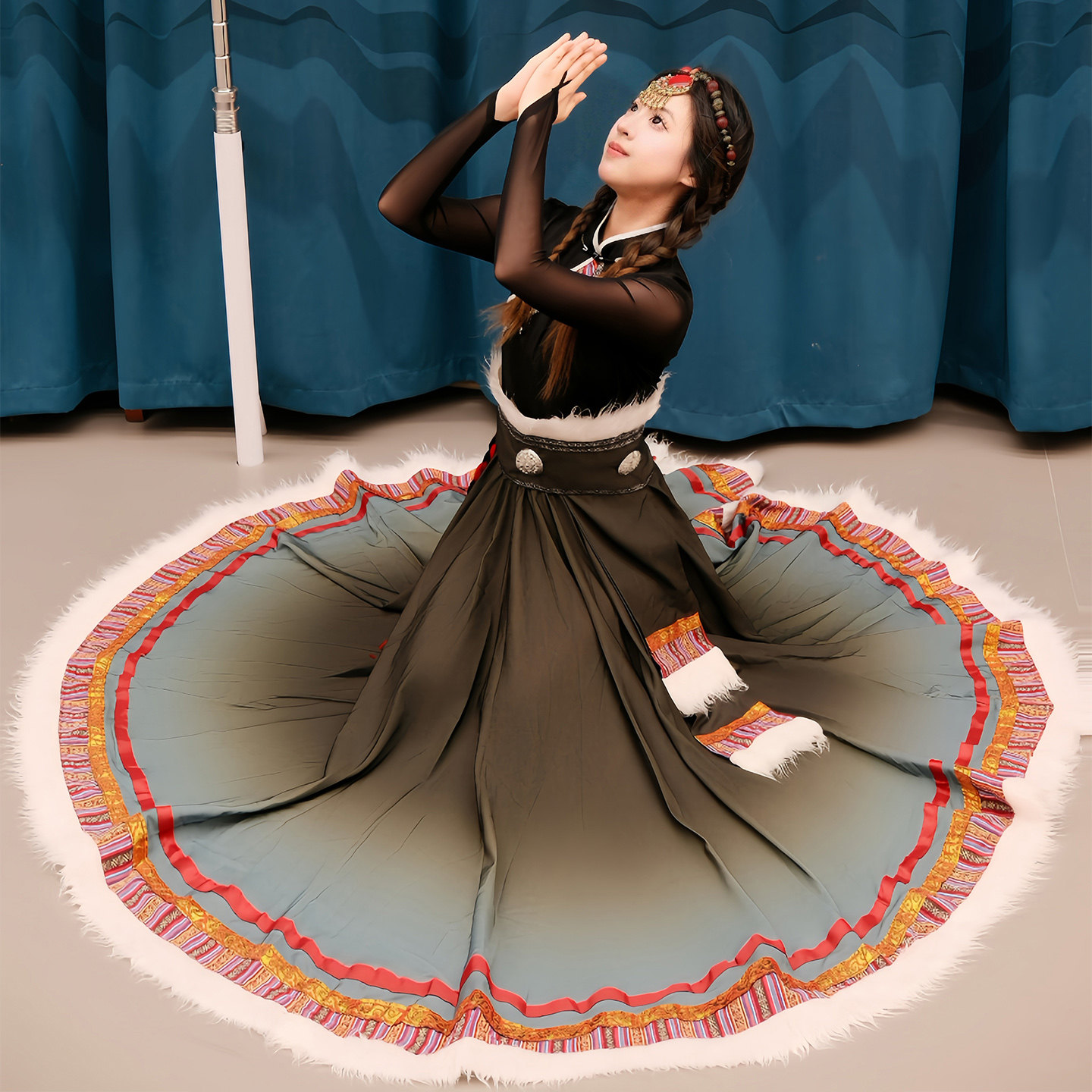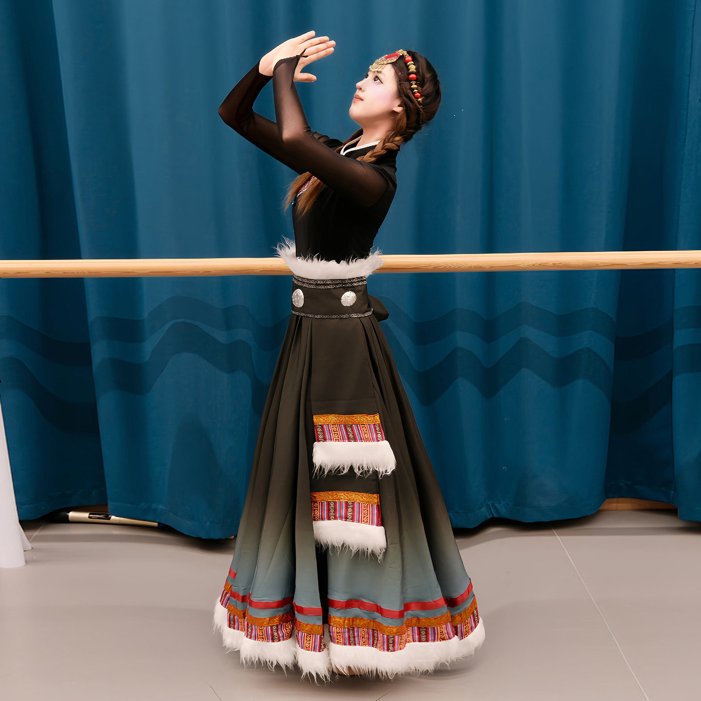 藏族舞蹈表演服艺考民族服装 大摆裙演出服 练习裙藏舞半身裙女长袖
